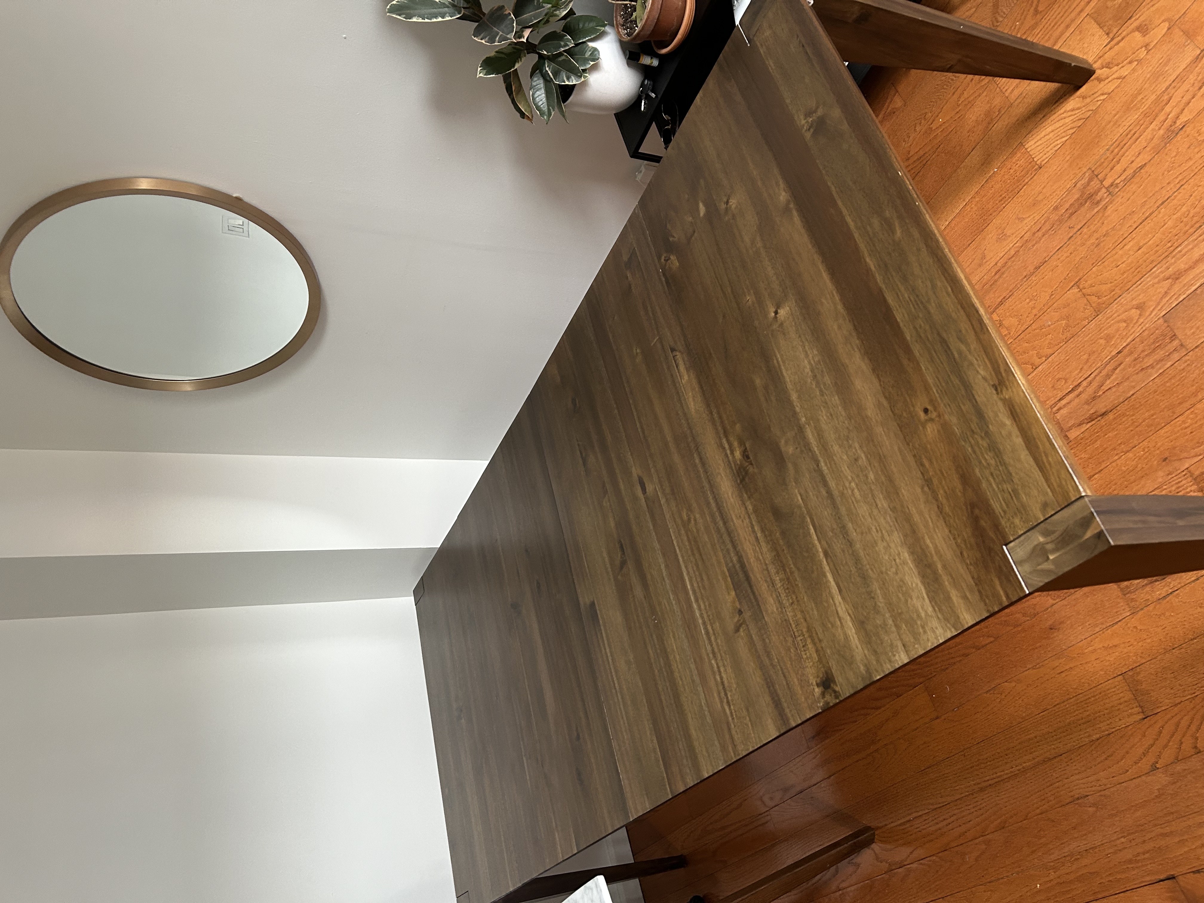 The idea was definitely not as described, I feel a little duped. The item has lots of stains that were not described or depicted in the photos. I spent all day using my bissell cleaner on it and the stains still won’t come out. Overall I am sad and disappointed but going to make the best of it. AptDeco did nothing wrong and had great service, but I wish they could review the items before.
