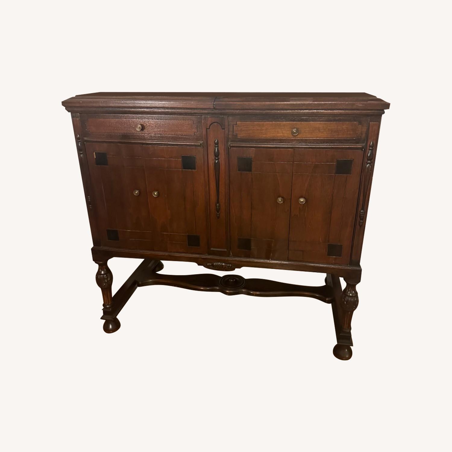 Seller's Notes:This 1923 Victor 405 Victrola is a piece of music history. There's a hand crank on the side, and the original record slats make for convenient file storage. I have no idea if it's musically functional, but it has served as a small TV and book stand in our apartment for 15 years--and sadly must go with a remodel. The solid wood legs are quite hefty and sturdy, but some of the laminate is warped.