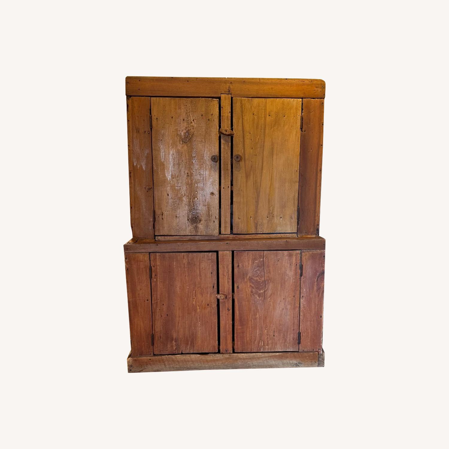 Seller's Notes:RUSTIC 1930s AMERICAN PRIMITIVE STEP BACK CABINET - IN DECENT SHAPE, LOTS OF CHARACTER. COMES FROM AN OLD FARM HOUSE IN MINNESOTA.