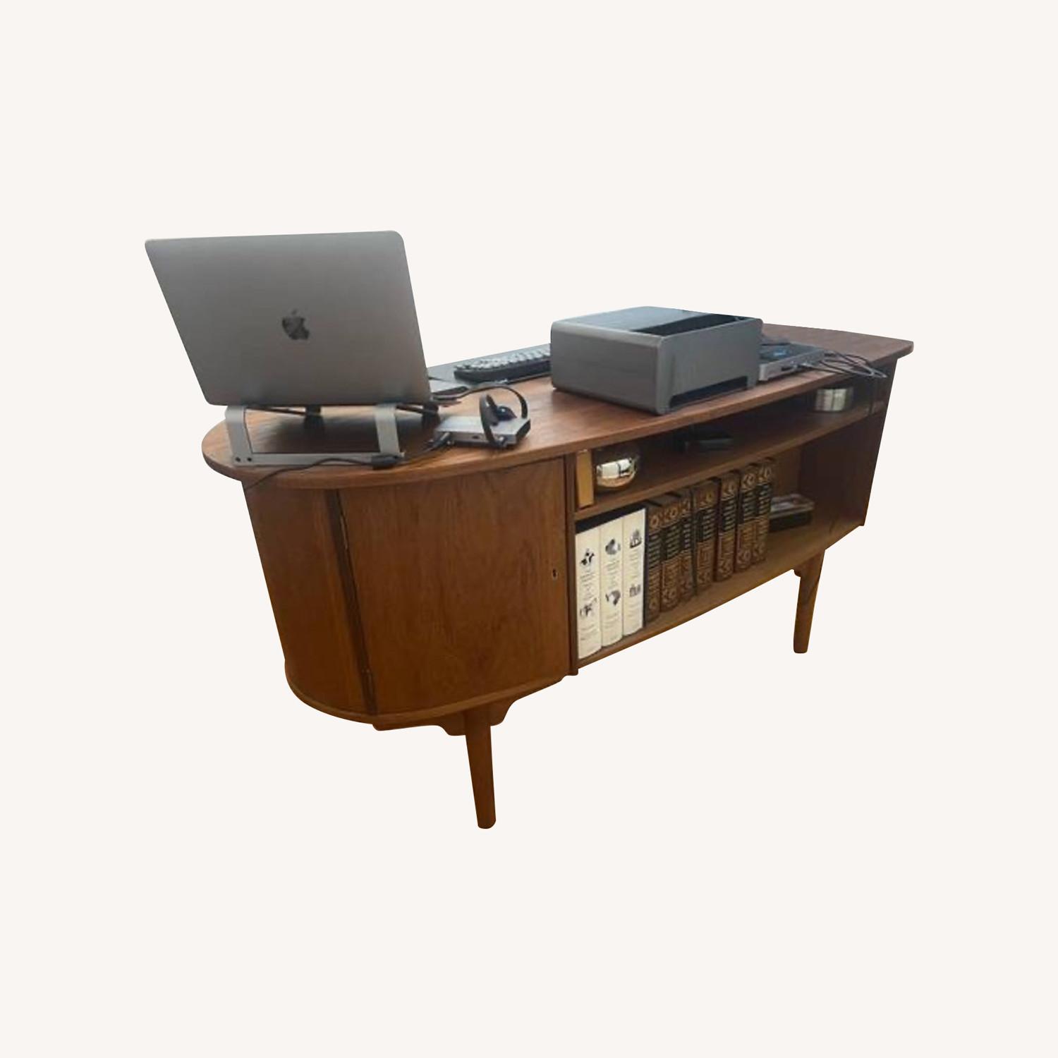 Seller's Notes:This is a midcentury rosewood danish desk. The desk is in. great condition- no blemishes or scratches. Rosewood is rare and maintains itself really well.