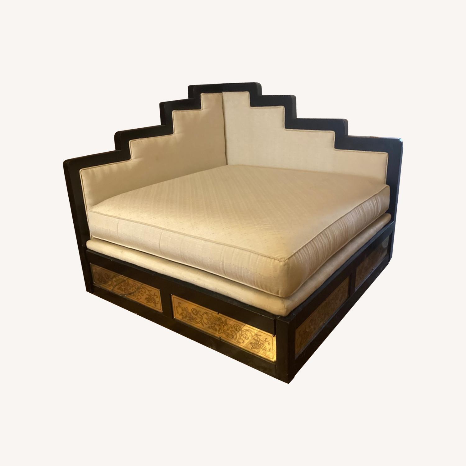 Seller's Notes:Beautiful art deco chair from Schweiger. Black wooden frame with white satin upholstery. Minor stains, recently professionally cleaned. One of a kind piece.