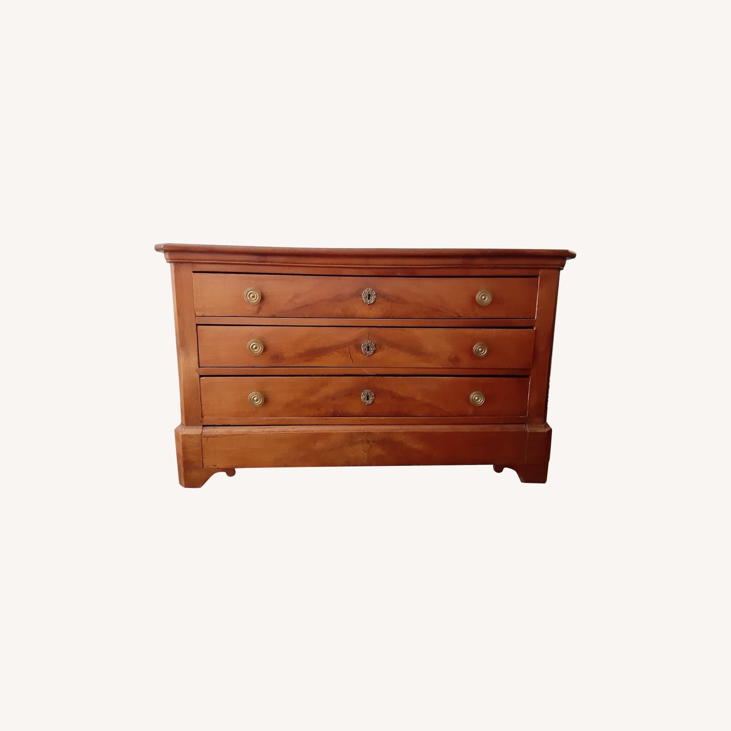 Seller's Notes:This elegant bureau is made of golden, honey-colored fruitwood and features fine veneer that creates wave-like patterns on each drawer front. The three drawers are slightly graduated in height and have their original hardware. Construction features include beading, chamfered corners and flat horizontal panels on the ends. The bureau is an excellent example of the Biedermeier style, which was popular in Europe, especially Germany, Austria and Sweden, and in the US, from the early to the later mid-19th C. We cannot be certain where it originated, however, we inherited it from a friend whose parents left Hamburg in the early 20th century and brought many fine furnishings with them. This antique piece would enhance a contemporary or period setting. We would continue to live wit it but are downsizing to a smaller apartment.