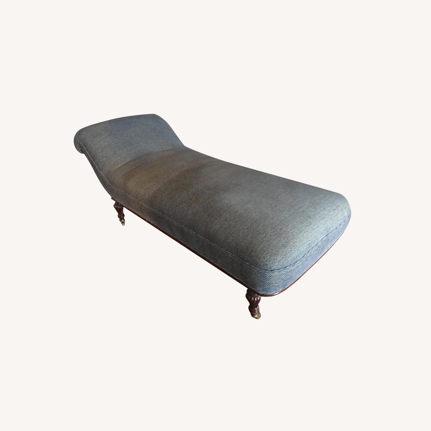 Seller's Notes:This antique chaise lounge was gently used in our bedroom our suburban home. We have moved to an apartment in Manhattan, and don't have room for it here. It is in very fine condition. There are no scratches on the wood, and it is upholstered in a blue chenille fabric which has no stains or snags.