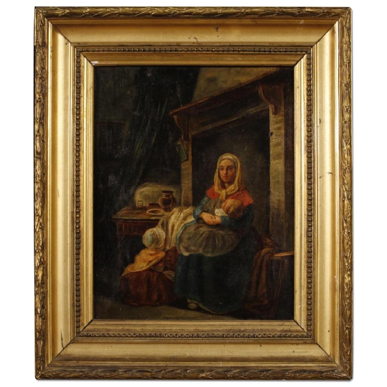 Seller's Notes:COD: 6984 Pretty French painting of the second half of the 19th century. Work oil on canvas, in the first canvas, depicting a pleasant interior scene "Mom with children" of good pictorial hand. Painting of small measure for antique dealers and collectors. Frame in wood and plaster, carved and gilt, of beautiful decoration. Artwork full of details, for painting lovers of the 19th century. It has undergone a slight conservative restoration. Overall in good condition. Sight size: H 27 x W 22 cm.