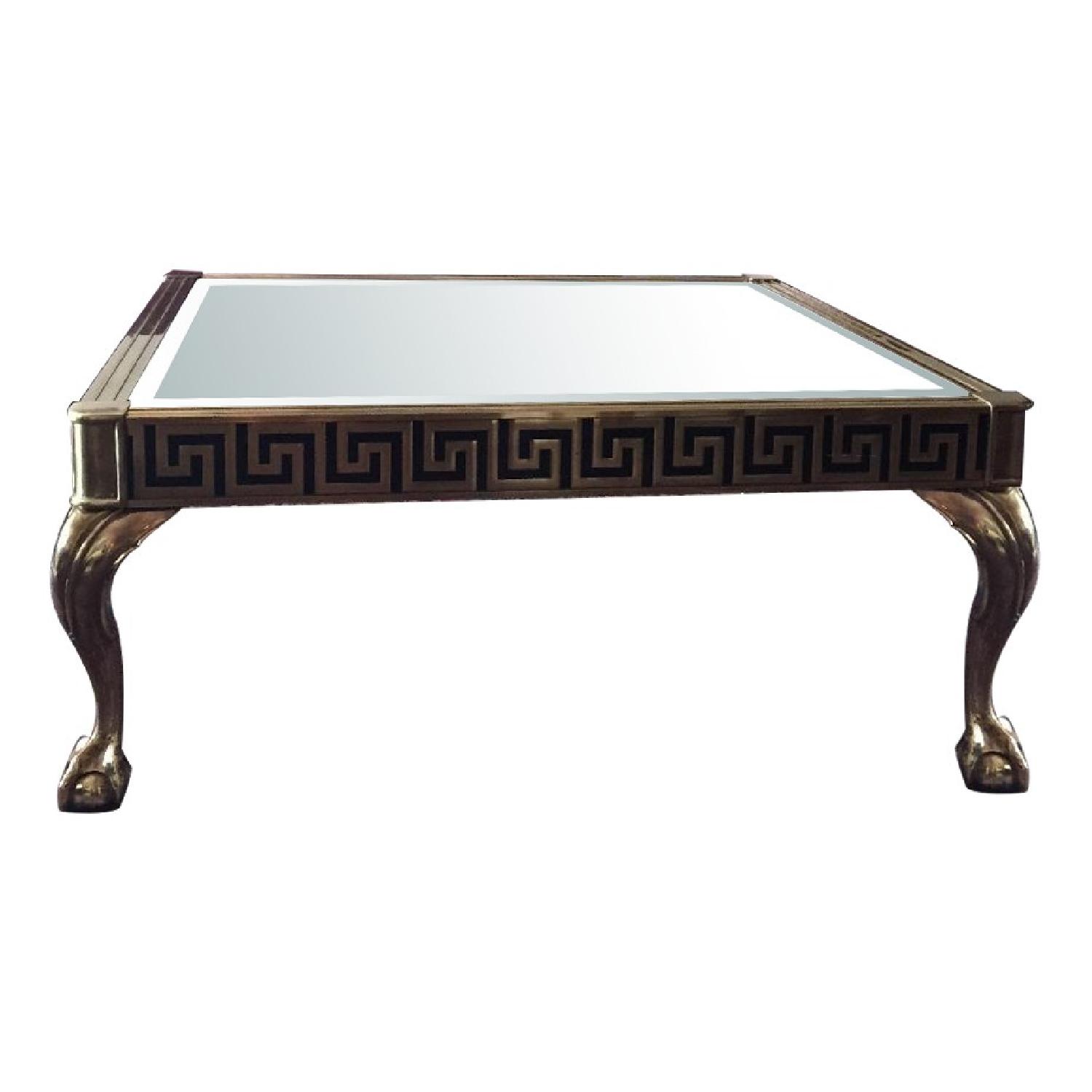 1st Dibs Brass Coffee Table w/ Greek Key Design & Glass Top
