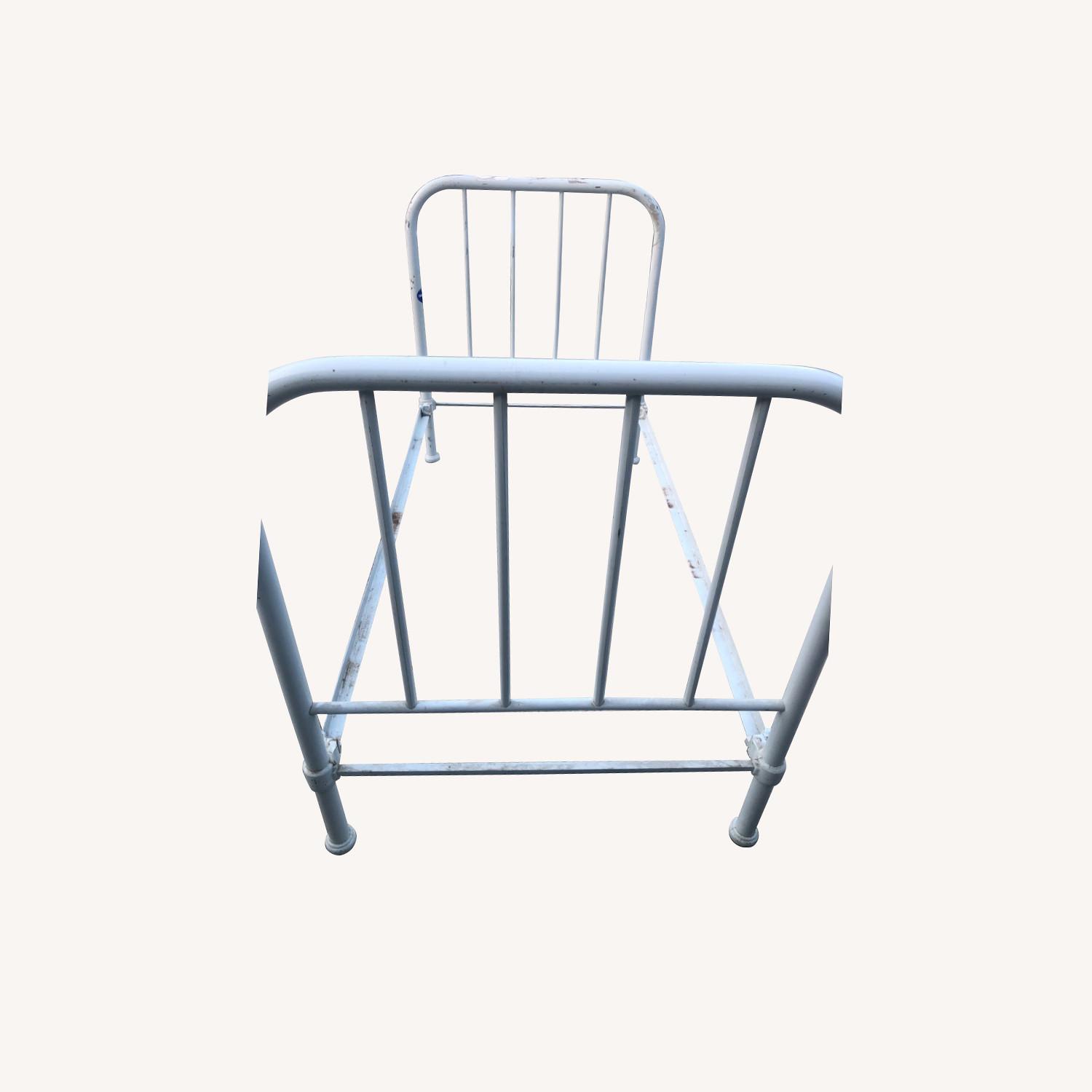 Seller's Notes:2 Antique/Vintage Cast Iron bed twin bedframes. Measurements roughly 71” in length by 41.5” wide. 11” from rail to floor 49” total height floor to top of head & foot board. 2 available and they are identical