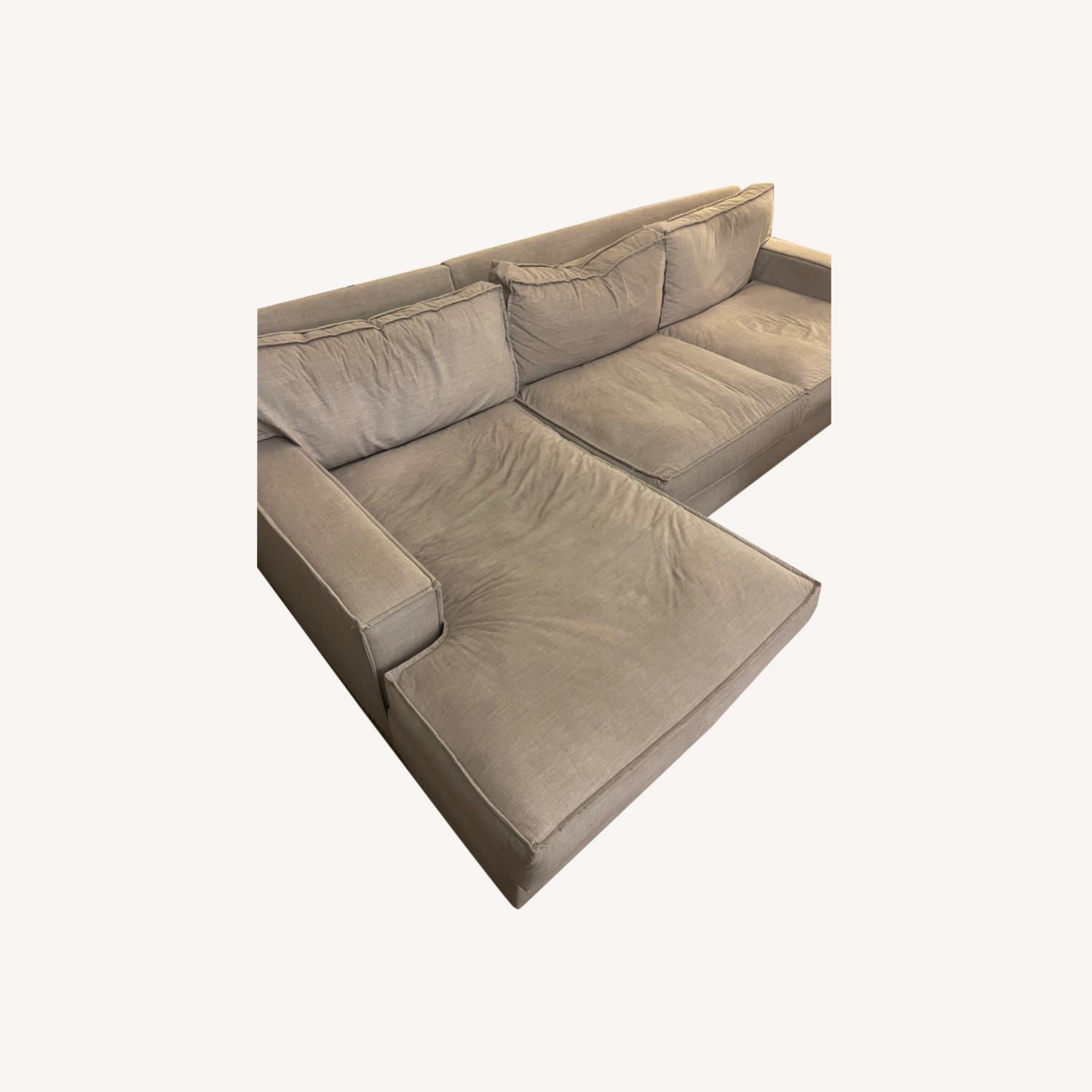 Seller's Notes:Sectional couch (two pieces— two seater side and chaise) in light gray microsuede fabric. Slight wear and tear on one of the arms (accident while moving) but otherwise in great condition!