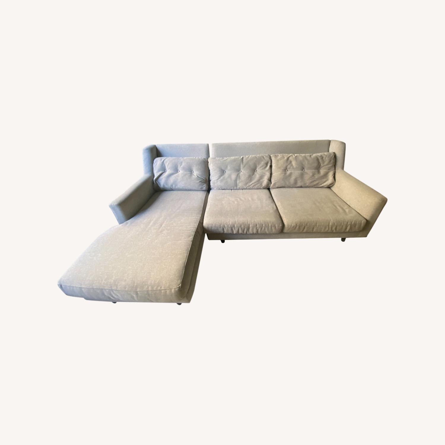 Seller's Notes:A 2-piece sofa with Chaise lounge attached. The Chaise lounge can be unattached to suit your living space. It comes with three cushions and minimal wear and tear. A perfect starter sofa.