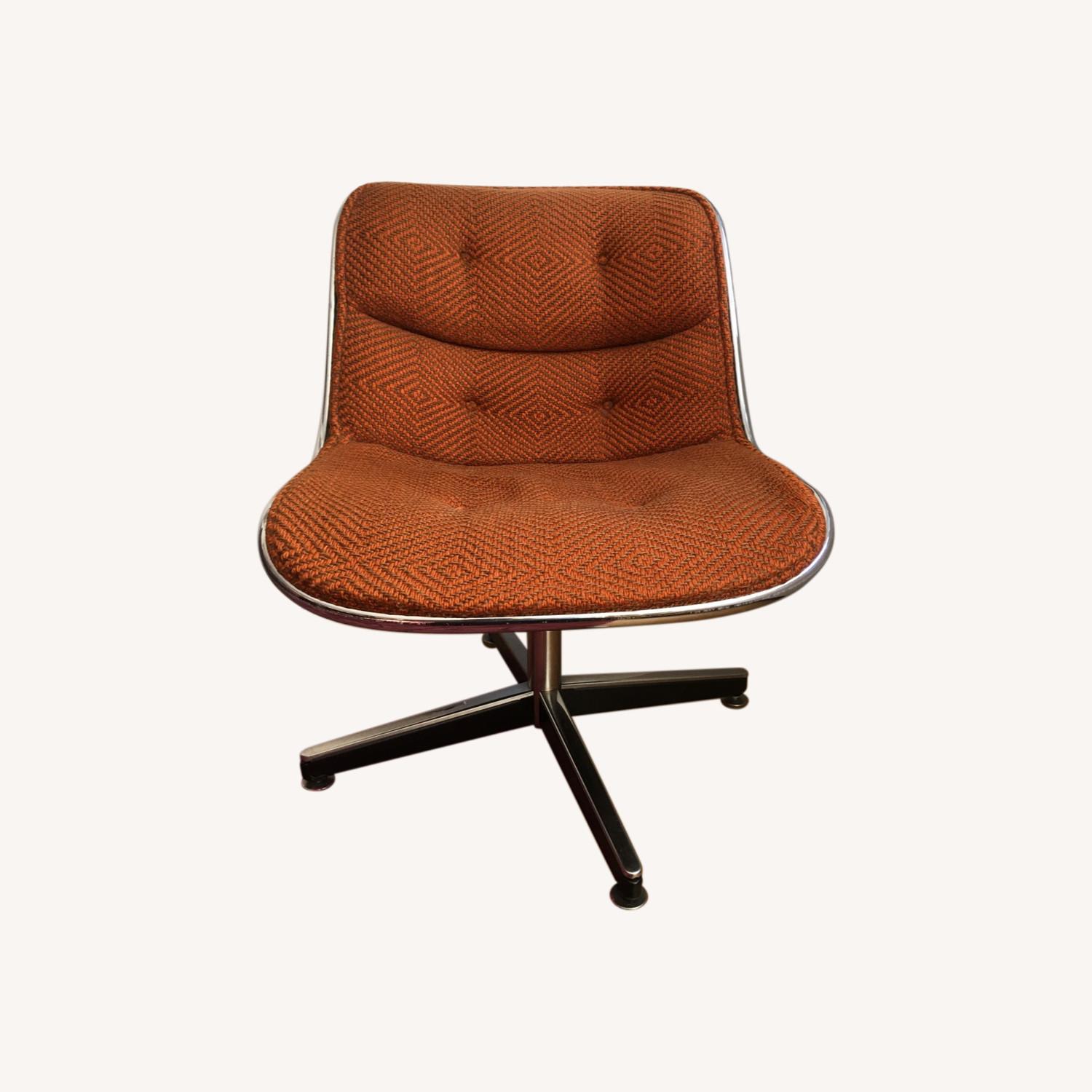 Seller's Notes:These chairs in original orange fabric by Knoll sat in an Upper East Side physician's waiting room for many years. Classic chair with fun orange fabric, though wear consistent with age and they are not young. No stains or anything like that, but they are not as firmly stuffed as they once were. Chairs are being sold separately, but if someone wants 2 or more I would do a discount for sure. 2 available at the moment with wheels vs. 2 available without, listed separately.
