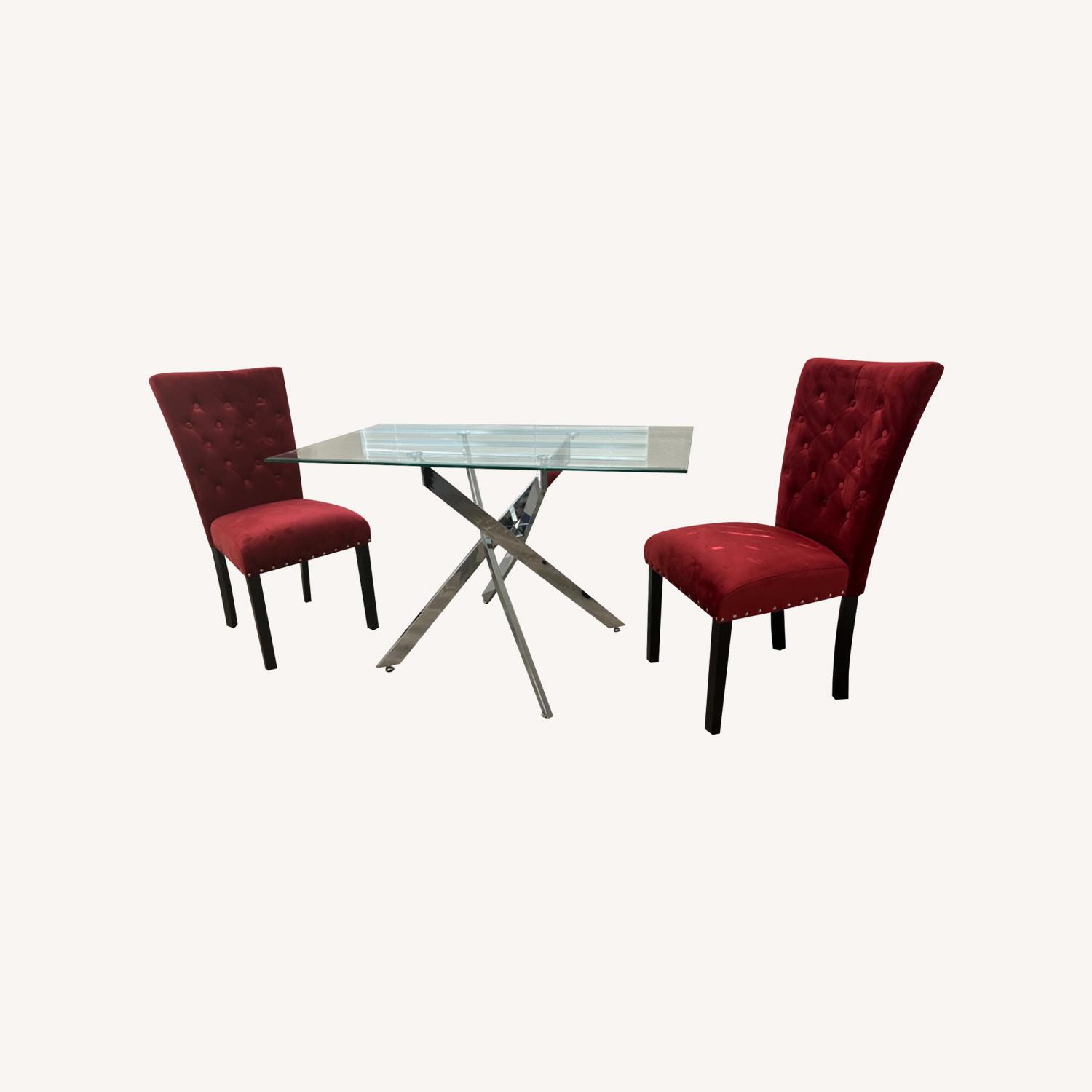 2 Tufted Velvet Chairs W Glass Dining Table Top