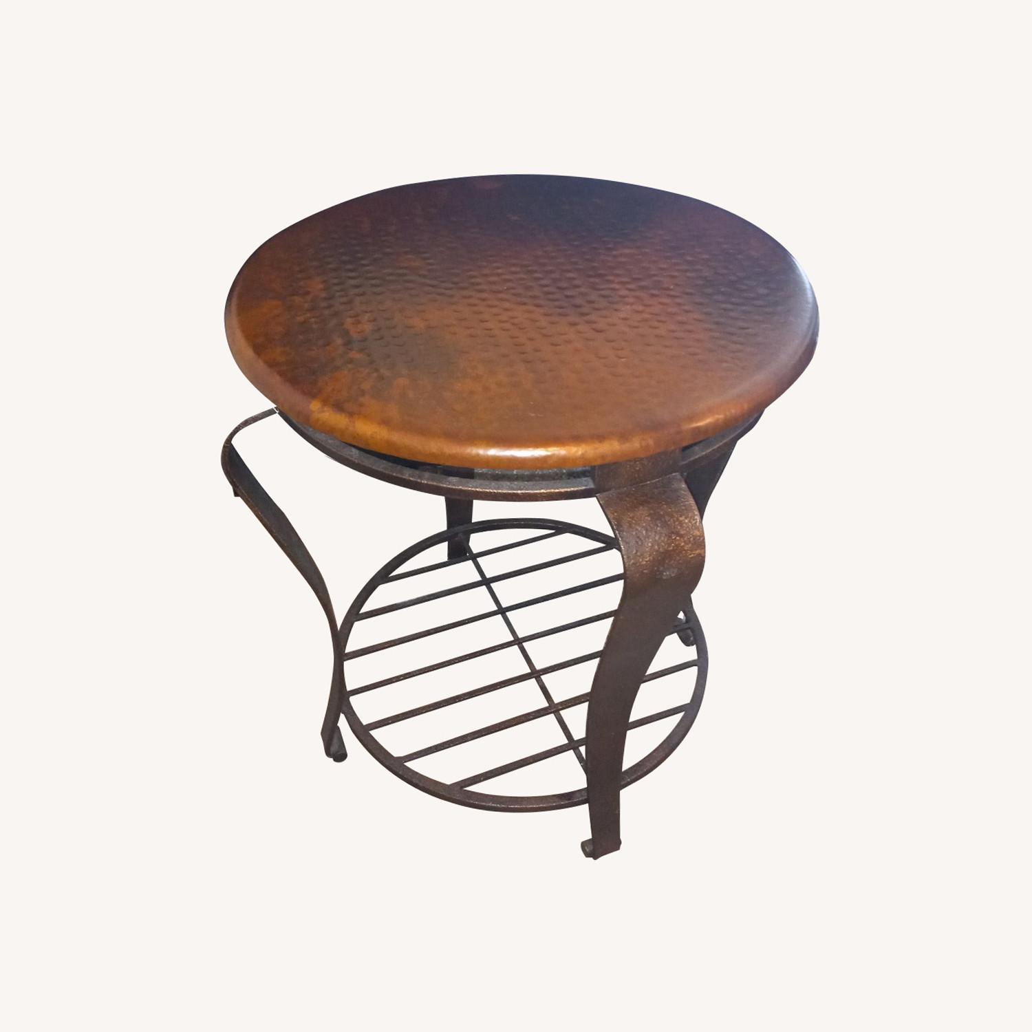 Seller's Notes:Faux hammered copper top with beautiful patina. Very minor surface scratch is not noticeable