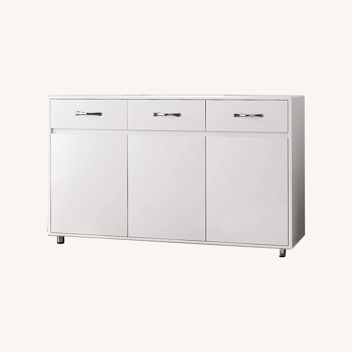 Seller's Notes:Grey/White color cabinet with 3 drawers and 3 doors, 2 different size shelving space can meet your storage requires perfectly. Round edges. Overall size: 52.36" X 15.74" X 32.08" H. Size of drawer inside:15.35 X 11.41 X 4H in. Weight capacity:90 lb