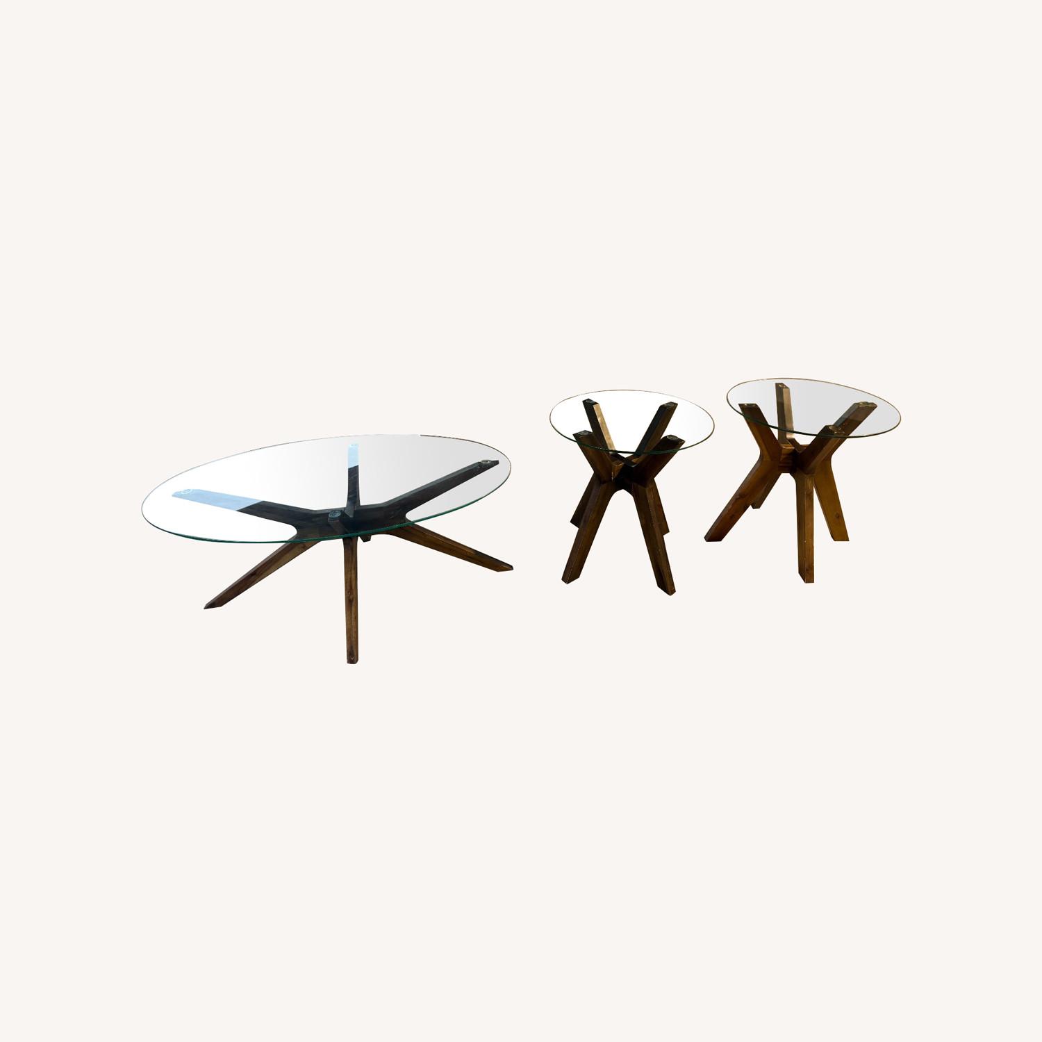 Wear and tear details: scratches, Perfect Conditions - Two Corner Table One Center Table Brown Wooden Frame with Heavy Glass Top - see pictures attached