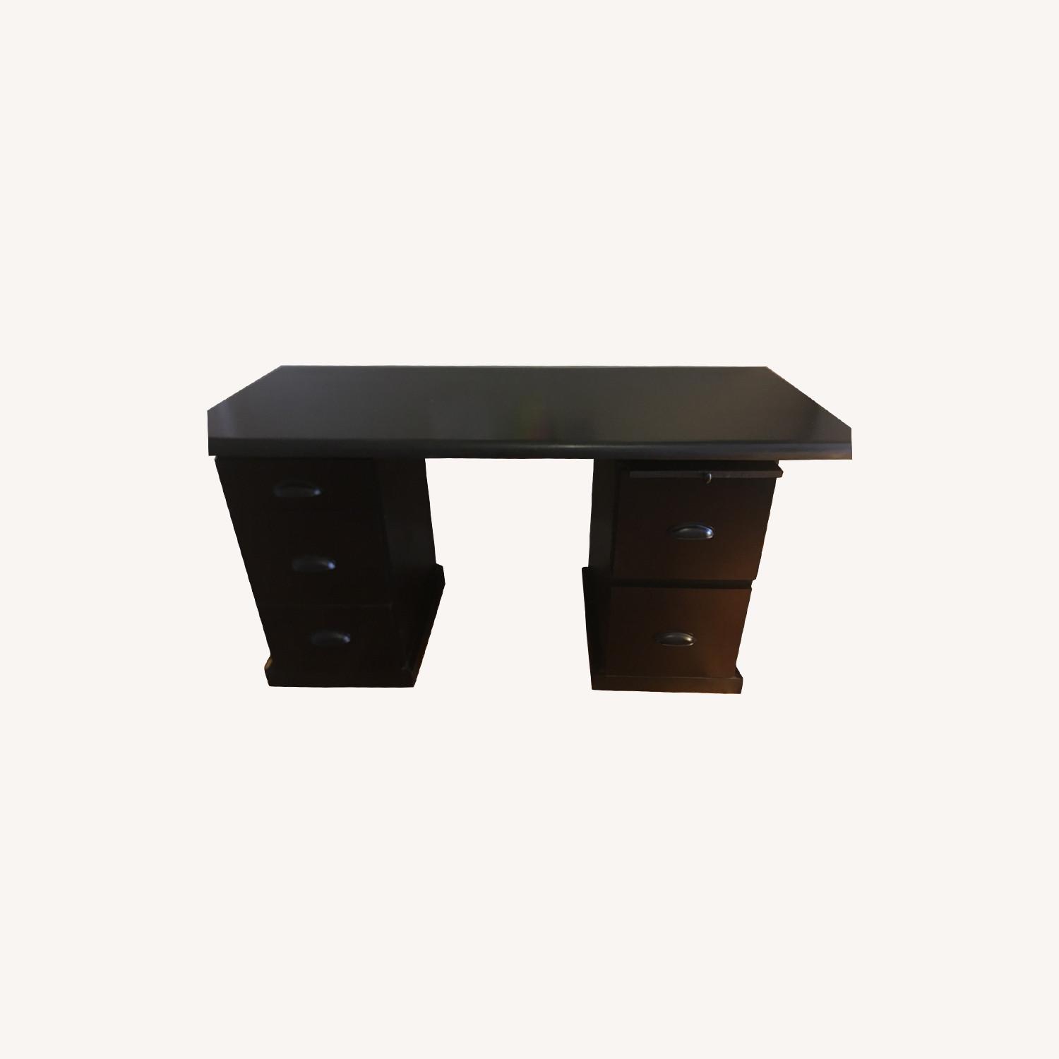 Seller's Notes:My uncle built this desk for me when I graduated college. It is now too large for my new apartment. It is a solid and beautiful desk. It has 5 drawers and an additional shelf that pulls out. The desk is in 3 parts. The top fits into the two columns and is easy to remove.
