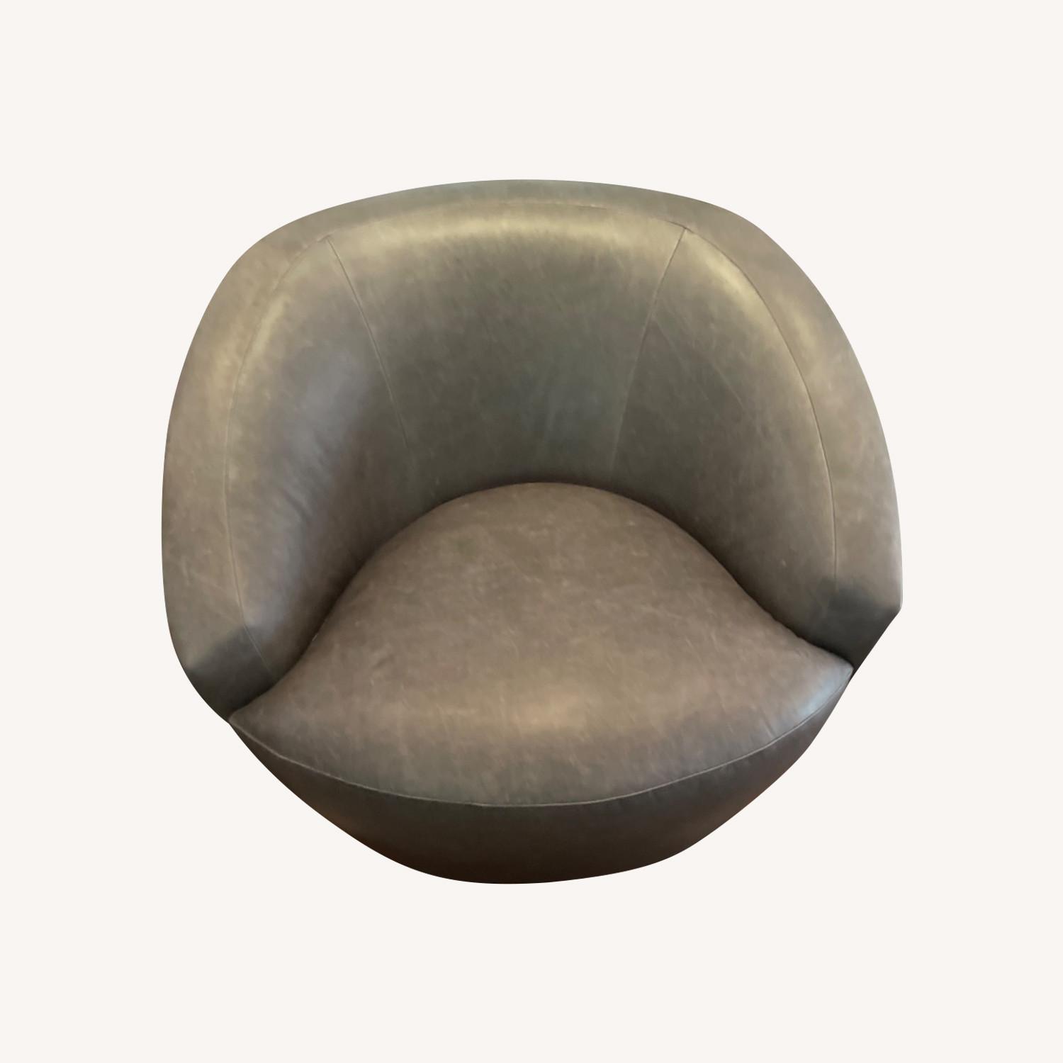 Collection: Lecco leather swivel chair special ordered in color pewter and fabric Italian Berkshire