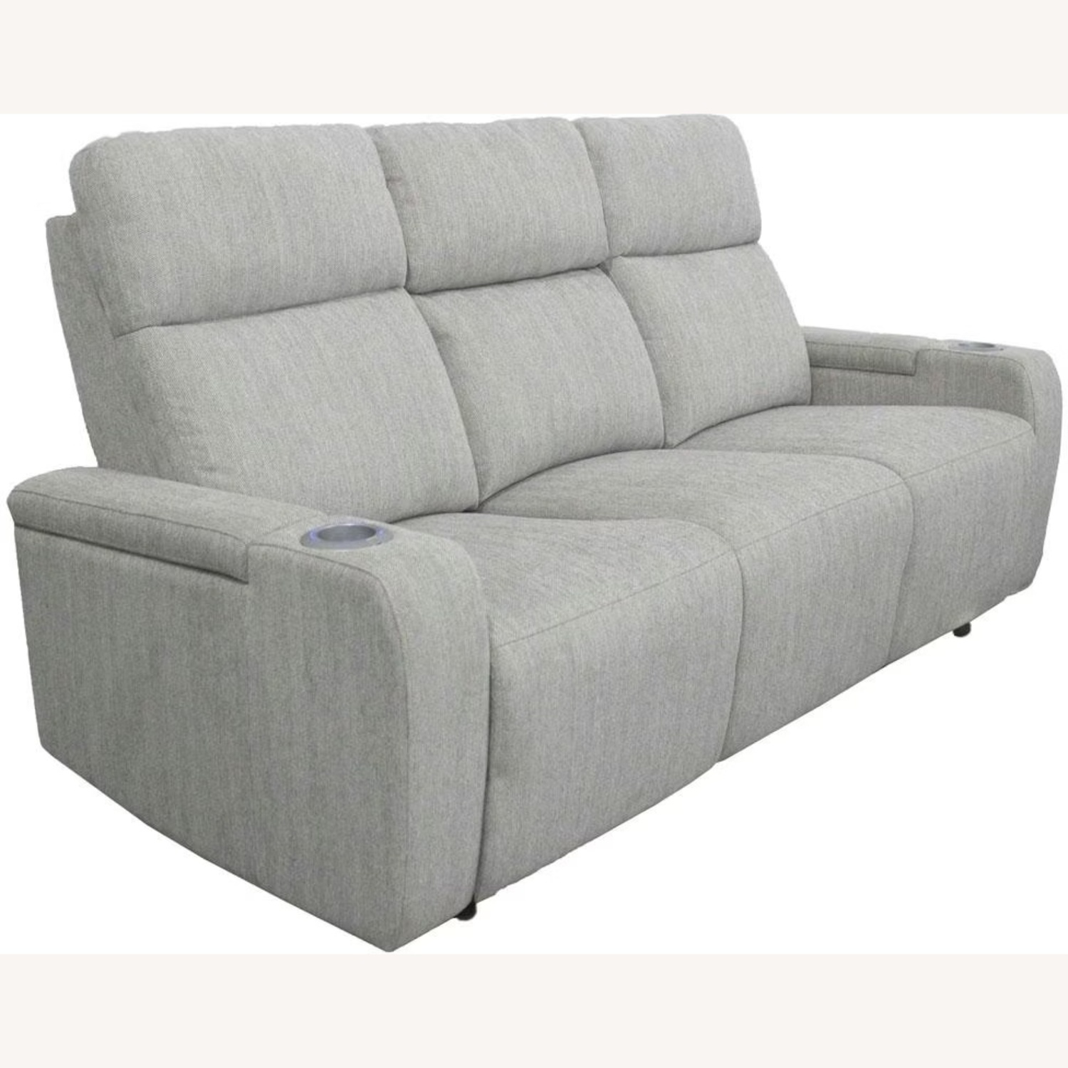 Center seat-back drops down and opens to a table with cupholders, reading lights, storage pocket, pop-up power center and a wireless charger