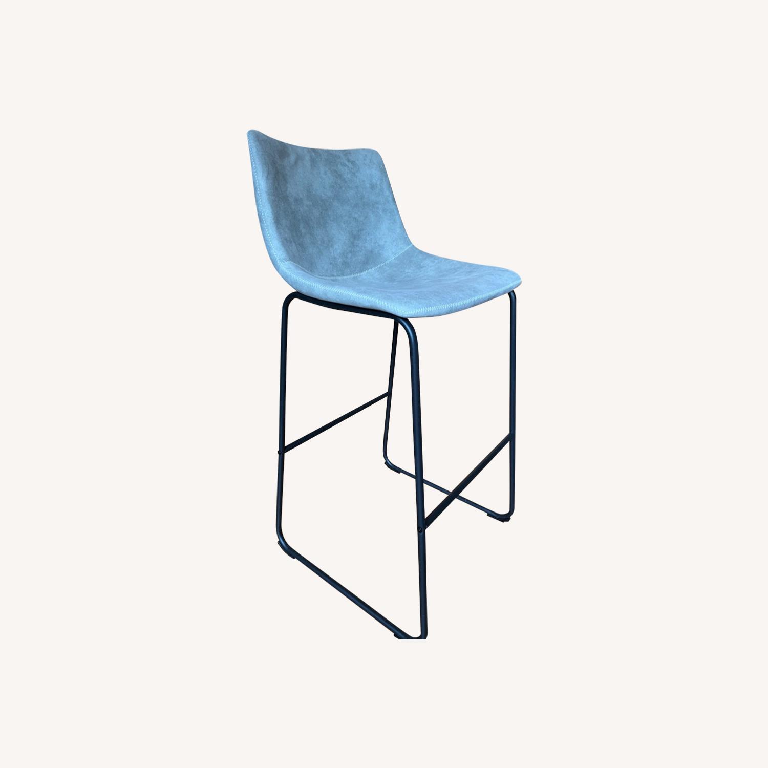 Seller's Notes:Like new set of four 30” seat height grey fabric bar stools less than 1 year old. One stool brand new never used.