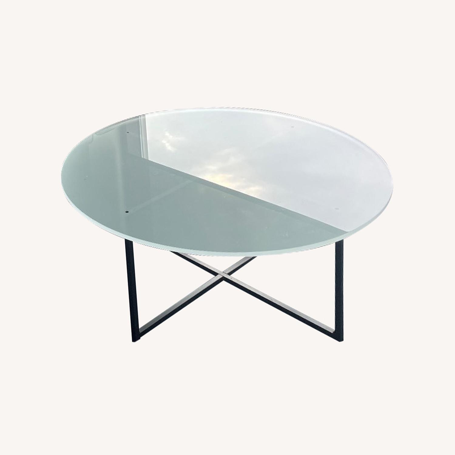 Seller's Notes:Natural steel base in perfect condition Glass top has some blemishes in the satin coating underneath but otherwise very good.