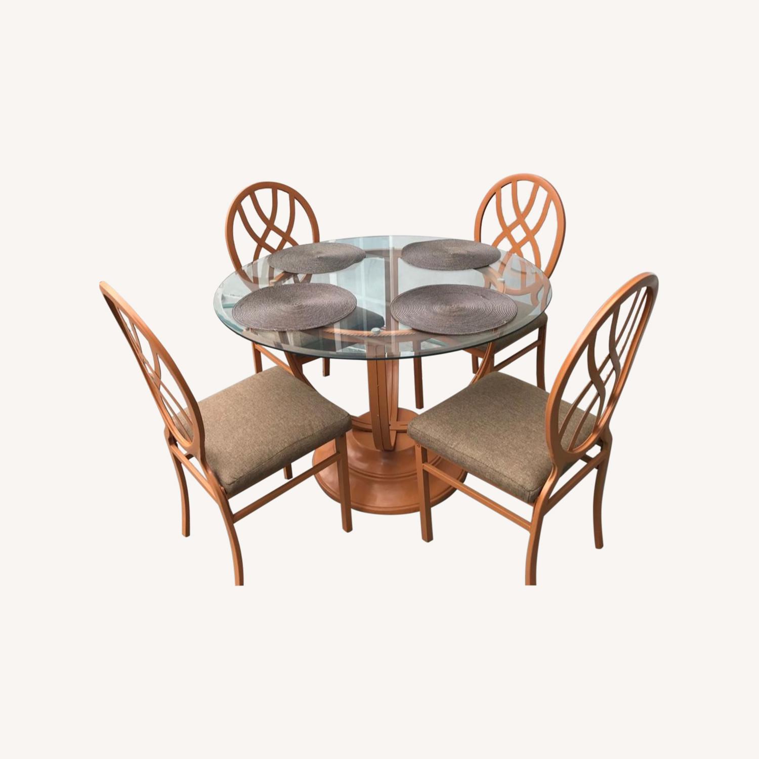 Seller's Notes:Includes a table with glass round top and 4 chairs with new upholstery