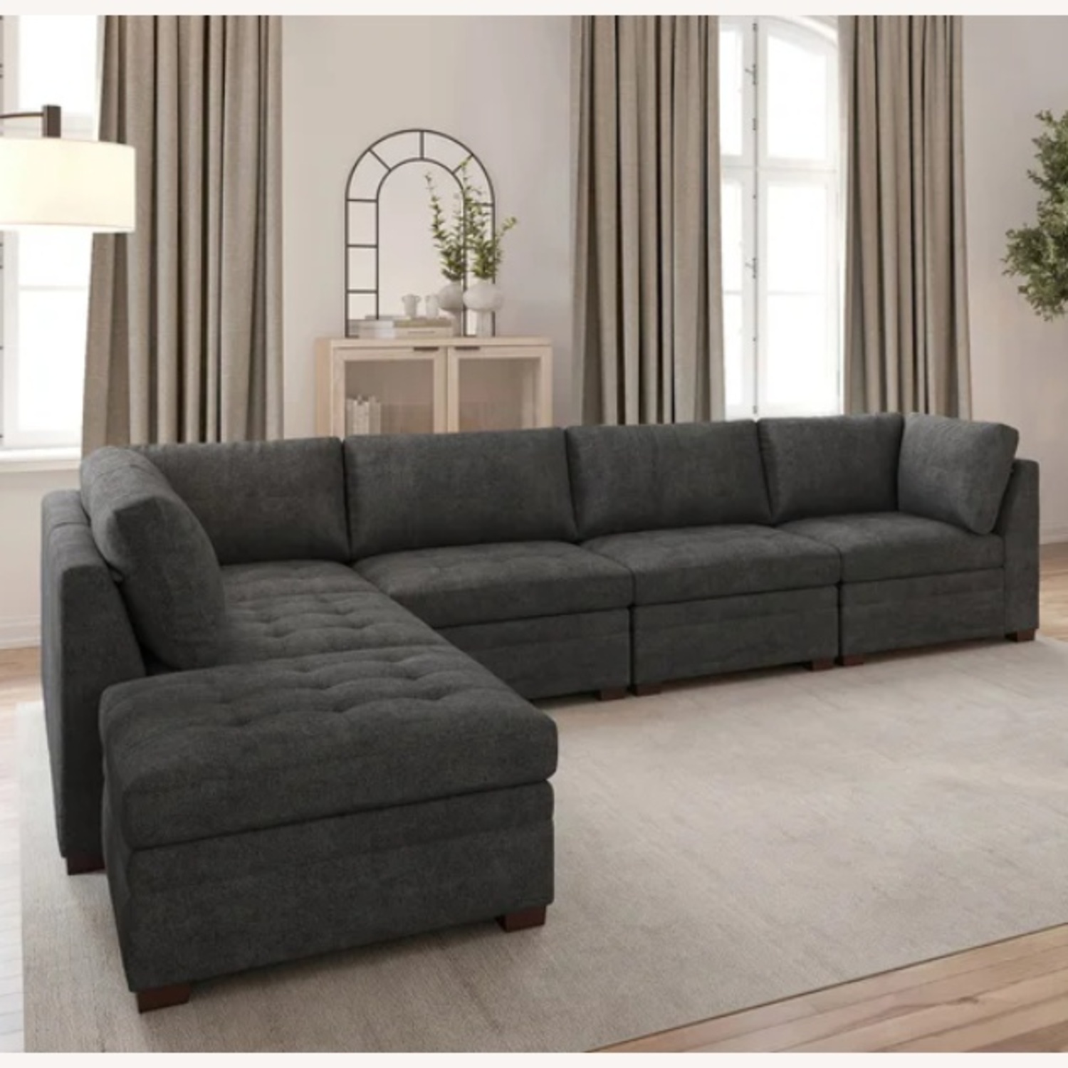 4 Piece Modular Comfy Sectional Sofa Dark Grey