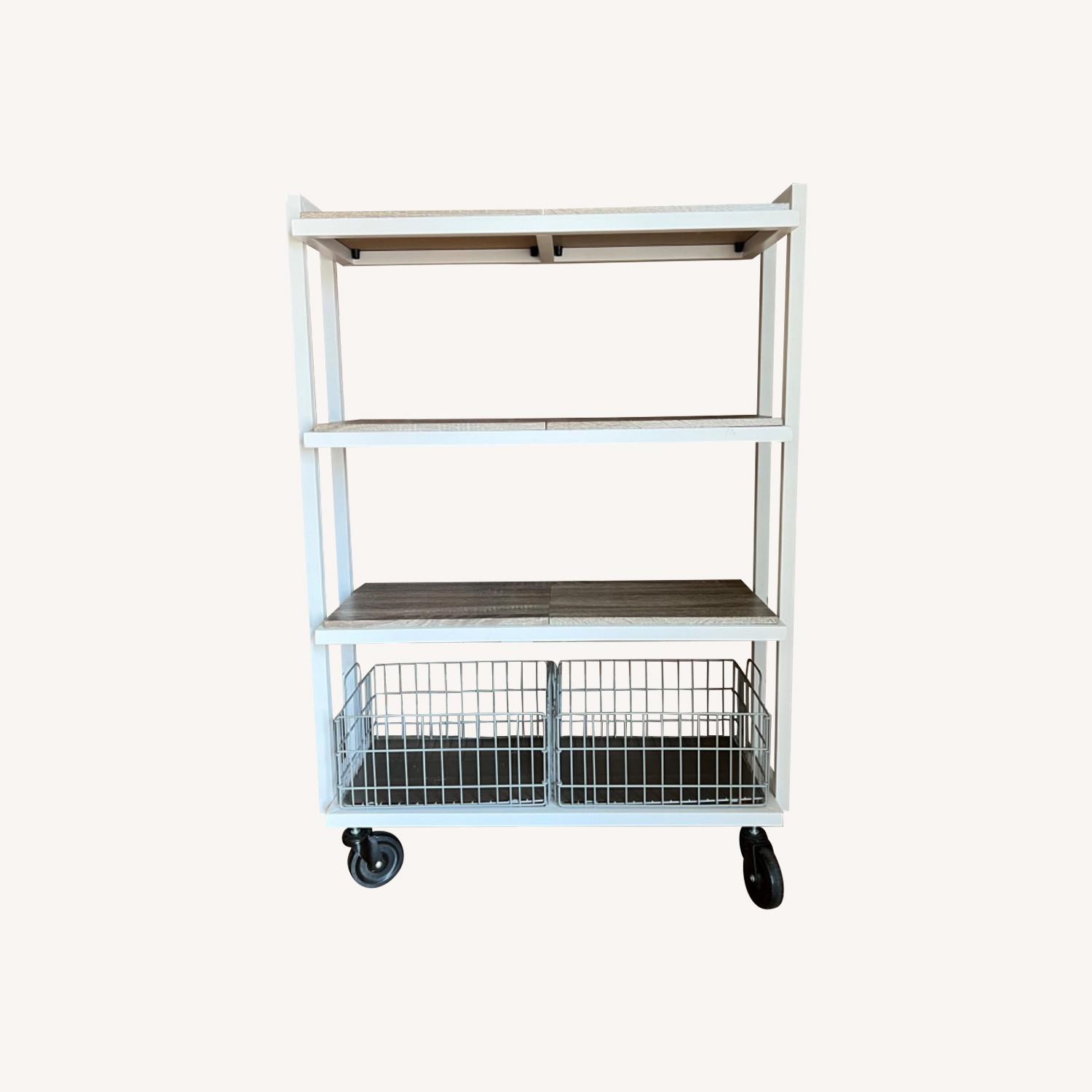 Seller's Notes:Purchased second hand in mint condition. Extremely helpful for storage for small kitchens. Also serves very well as a bar cart. Wheels on bottom (with breaks). Easily cleaned.