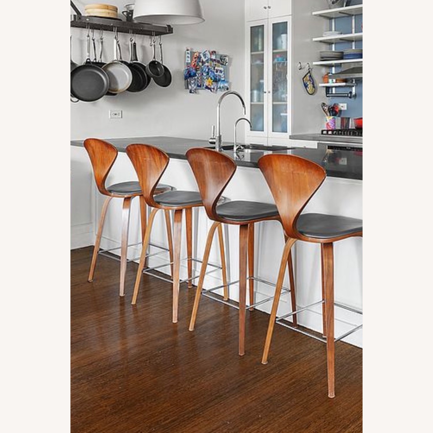 Seller's Notes:4 walnut Cherner Stools with grey cushion. Stools are in great condition but do not match our new decor.