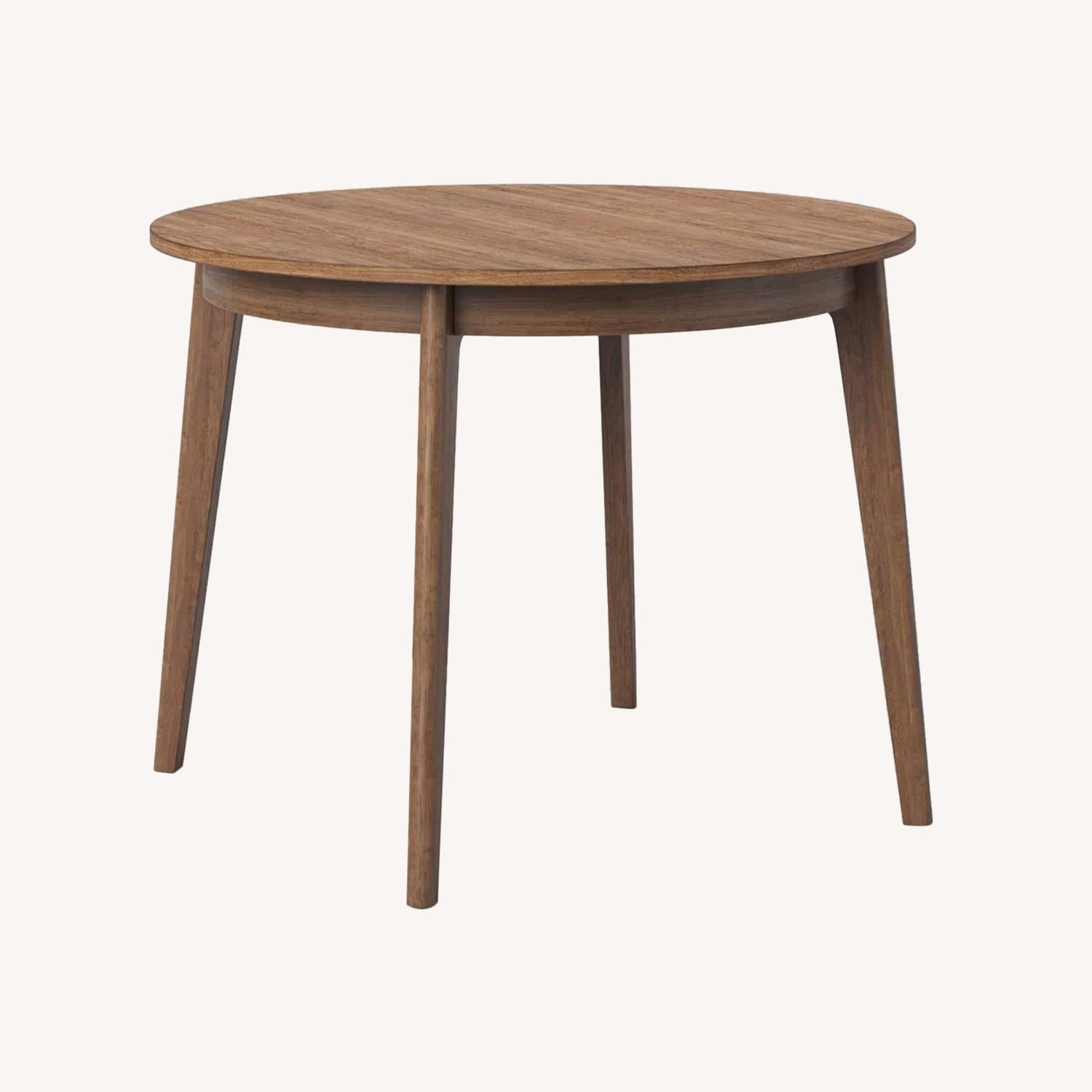 Seller's Notes:Freshen up your kitchen or dining space with the 40-Inch Astrid Mid-Century Round Dining Table with Fixed Top from Threshold™. Taking cues from mid-century designs and crafted of rubberwood, this sleek table stands atop slanting, streamlined legs and features a round tabletop in a versatile finish that goes with any decor. Sized to seat four, this round dining table is the perfect pick for cozy eat-in kitchens and smaller dining spaces.