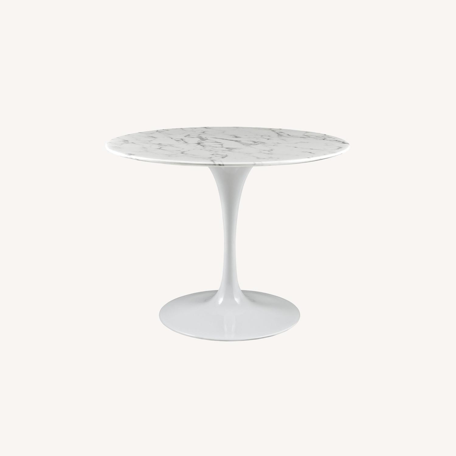 Seller's Notes:"Reflecting a seamless organic shape and timeless form, the Lippa dining table has become a symbol of modernism for over the past 60 years. Before its release, homes were filled with clunky remnants of an industrial age long gone by. But in order to advance into the new world, homes first had to transition from the traditional square table, into a piece that connoted progress. The base and dimensions are true to the original specifications, while the table’s circular artificial marble top, and tapered metal base, are carefully lacquered with a scratch and chip resistant finish." I bought this brand new from the manufacturer, but upon delivery, decided I wanted a different size. Because of expensive restocking/pickup fees with the warehouse in NJ, I am reselling myself.