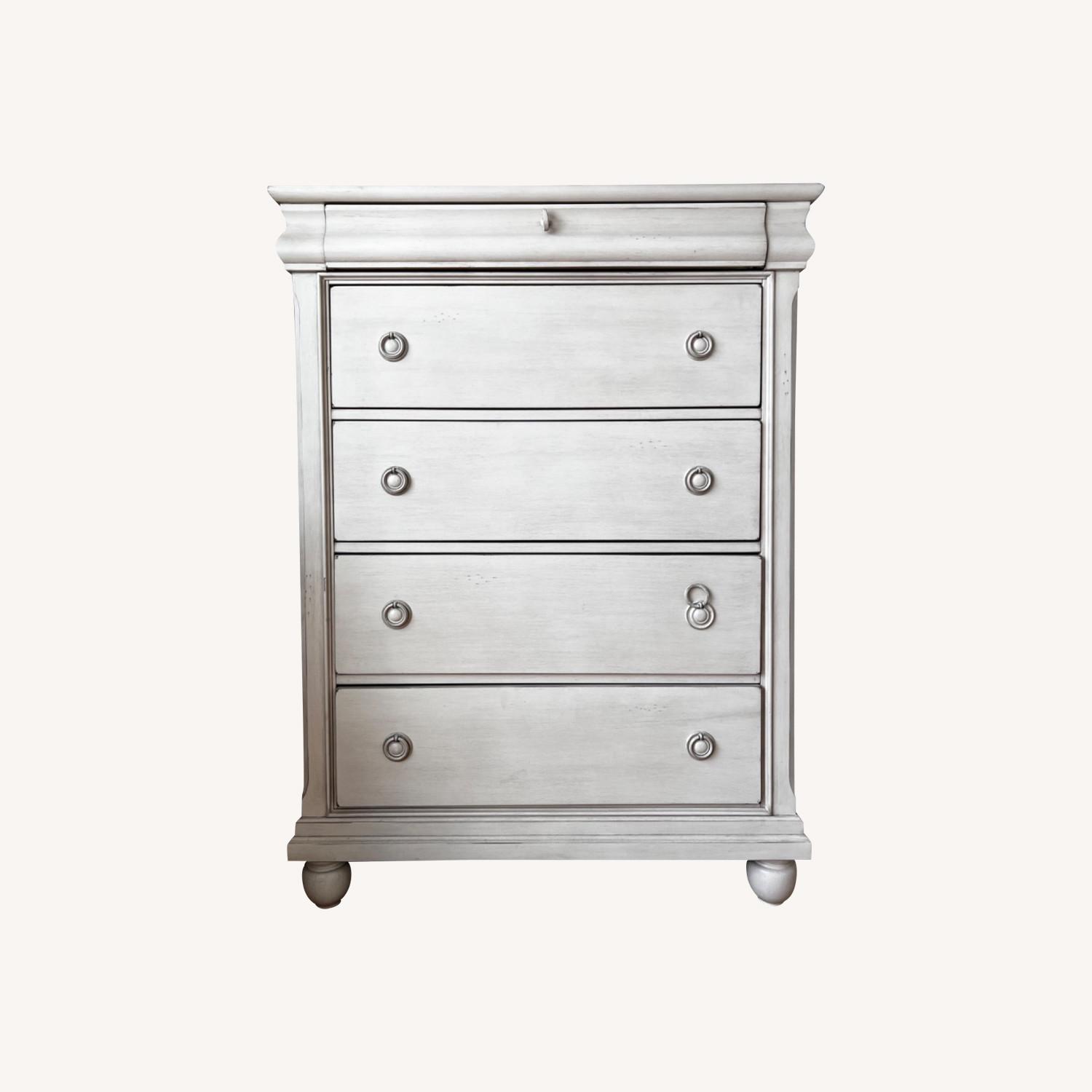 Seller's Notes:5-drawer wood dresser in off-white / natural color