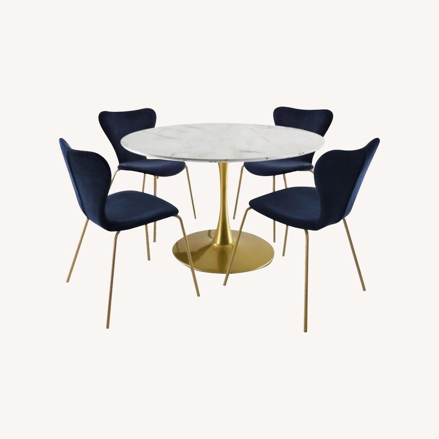 5 Piece Dining Set - White Marble + Velvet Chairs