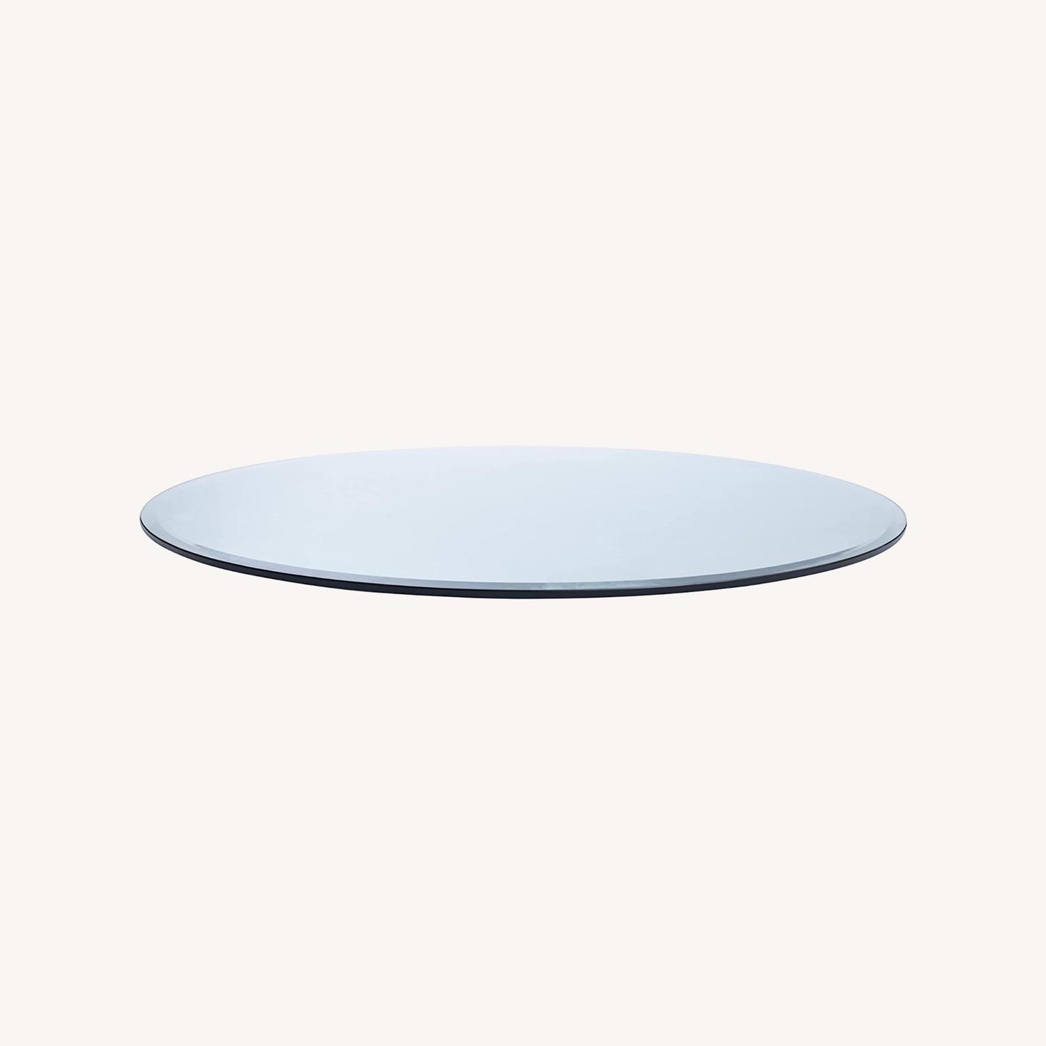 Seller's Notes:54" Round Clear Tempered Glass Table Top 1/2" Thick 1" Beveled Edge Round Glass 1/2" thick with 1" Bevel Perfect for your dining room table or coffee table!