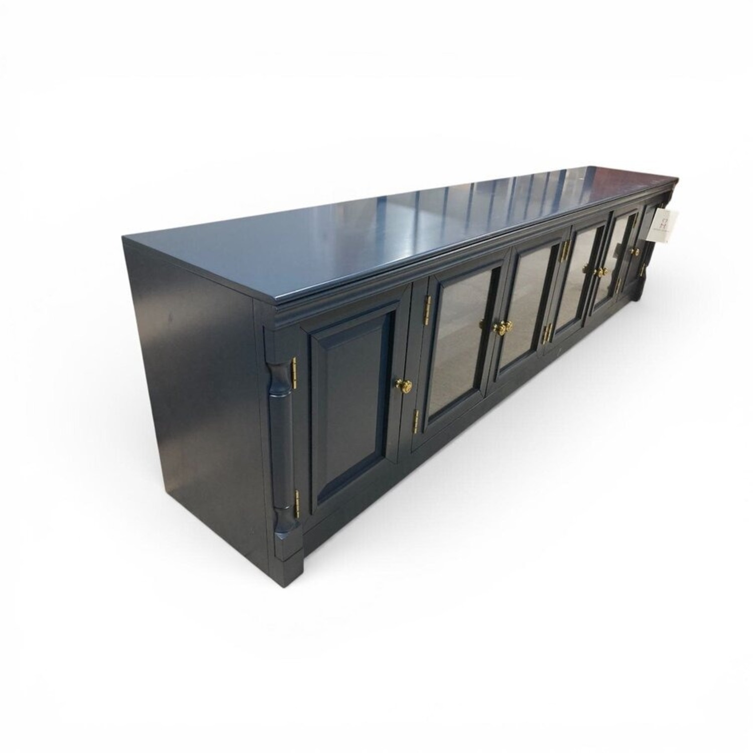 Seller's Notes:Add bold style and generous storage to your living space with the 6-Door Entertainment Console in Virginia Blue. Featuring a rich blue finish and clean, well-balanced lines, this media console makes a striking focal point while complementing both modern and transitional interiors. Six doors open to reveal ample interior storage for media components, gaming consoles, movies, and accessories, helping keep your space organized and clutter-free. The wide top surface easily accommodates large televisions, décor, or soundbars, making it as functional as it is stylish.