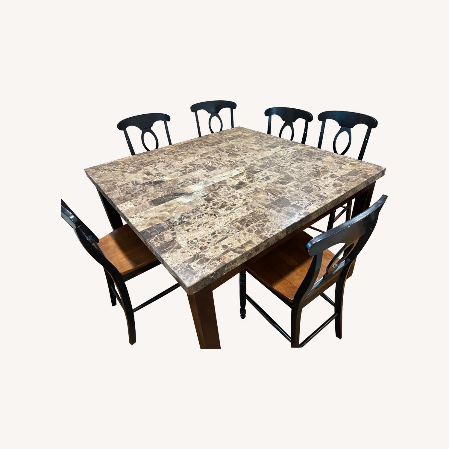 Seller's Notes:The table is real Marble it has 6 wooden chairs all original and in great condition the table was custom make from Raymour and Flanagan.