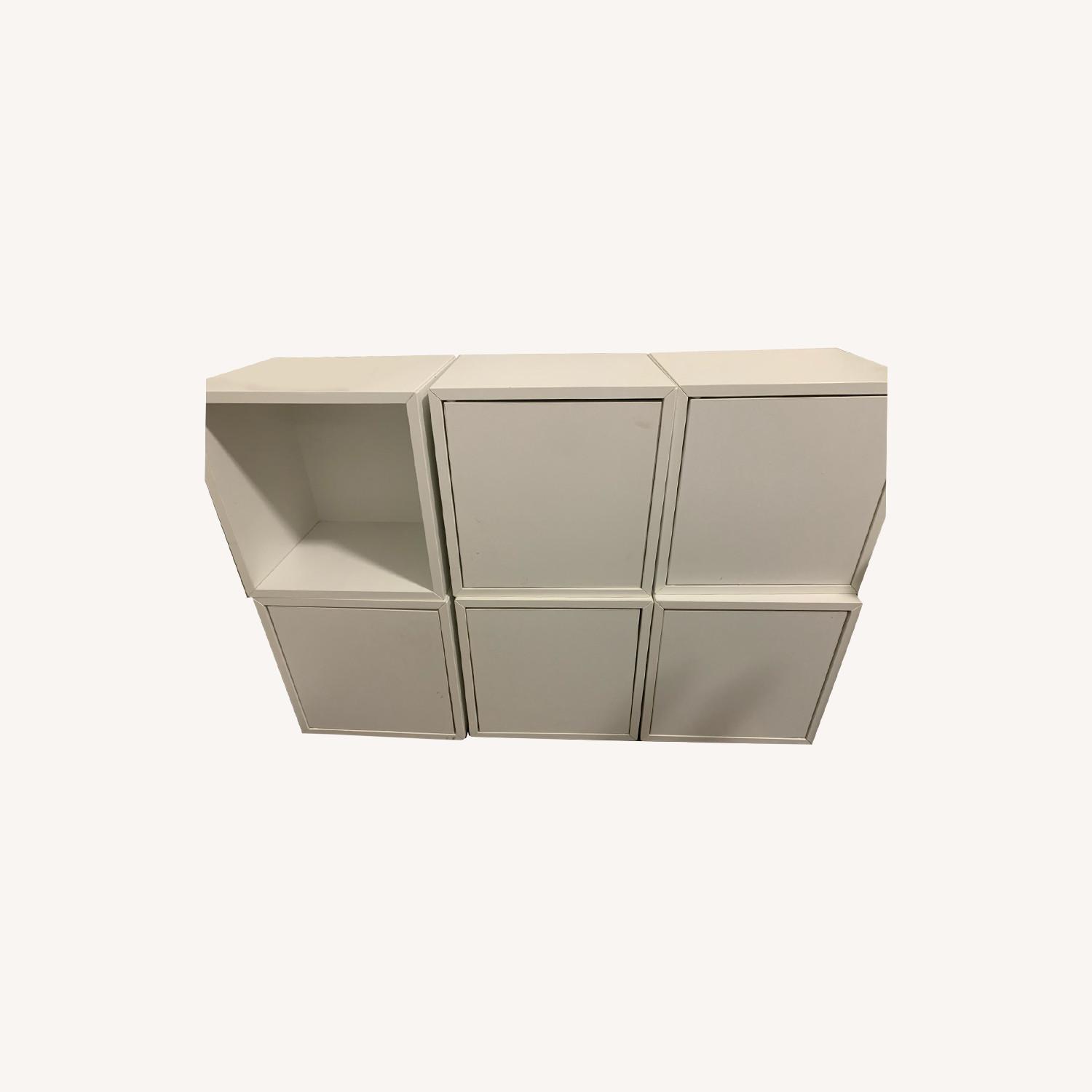 Seller's Notes:6 Cube shaped shelving units (12x14x14). 5 of them have magnetic closing doors on them.