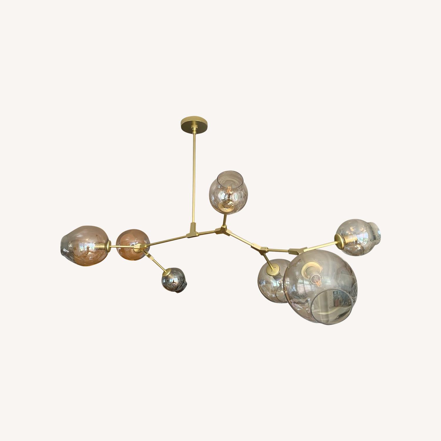 Seller's Notes:This branching chandelier was custom ordered for a previous space by an interior designer. It is similar to the one in the link but with 7 globes instead of 8 and the glass is light amber colored. The arms and globes can be adjusted (somewhat) to your liking. I loved this dramatic statement piece over my dining room table but I recently moved and don’t have a space to accommodate it. It is in almost new condition and the fixture and globes are already boxed and wrapped for moving.