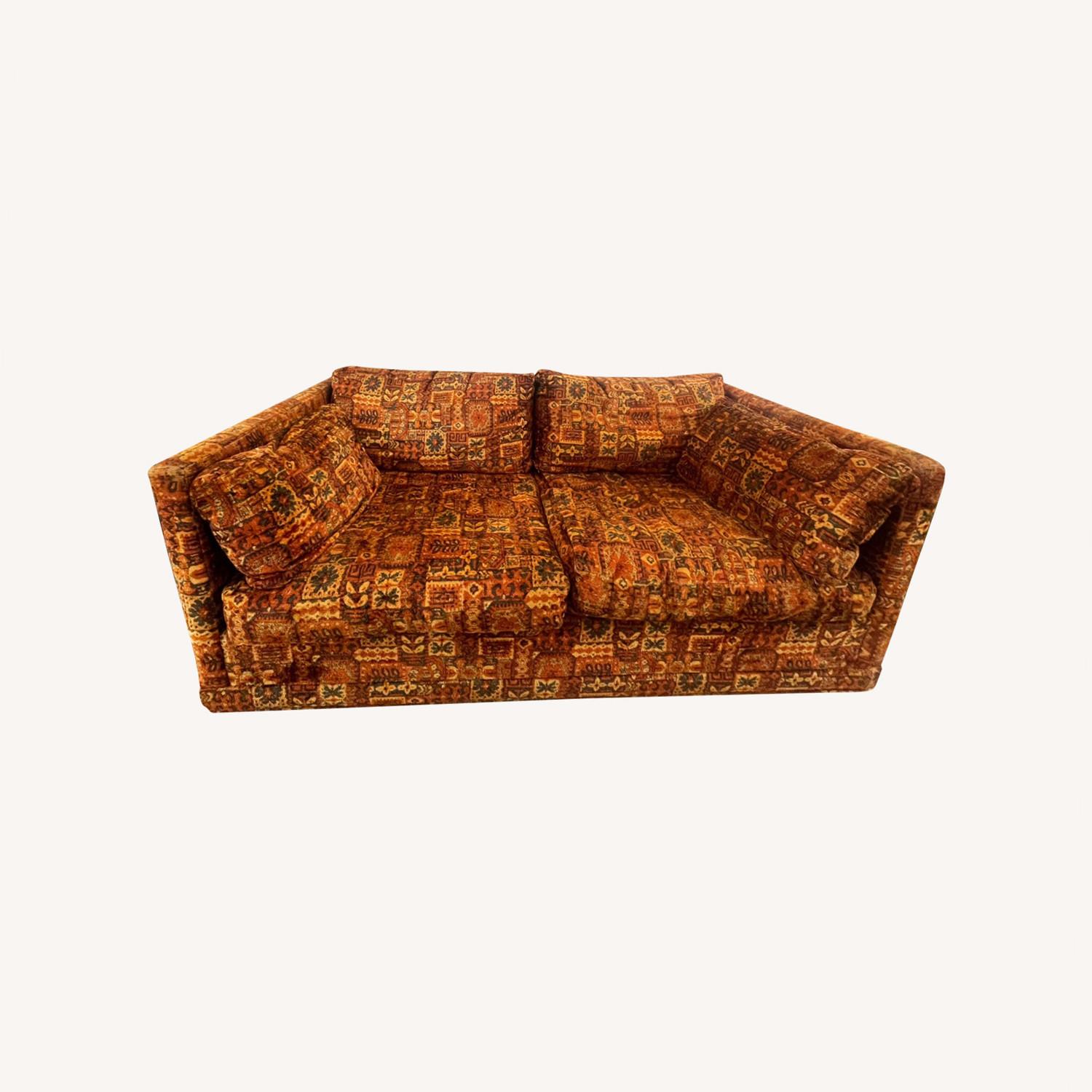 70s Printed Orange Velvet Printed Loveseat