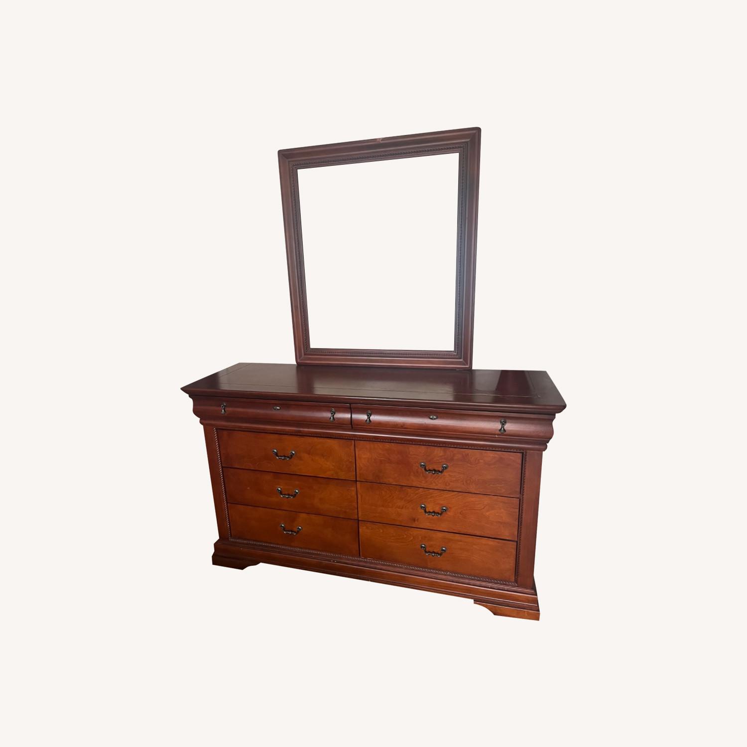 Seller's Notes:Elegance meets modern sensibilities with the 8- Dresser & Mirror. This rustic, streamlined design boasts a rich deep brown cherry finish. Complete your bedroom's look with this refined collection. Embrace timeless charm infused with modern flair.