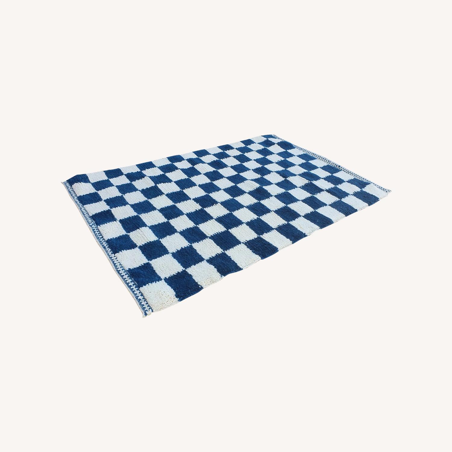 checkered petrol Rug Wool Hand Woven Genuine Moroccan Beni Ourain Carpet Soft Shag Artistic Oriental checker moroccan rug