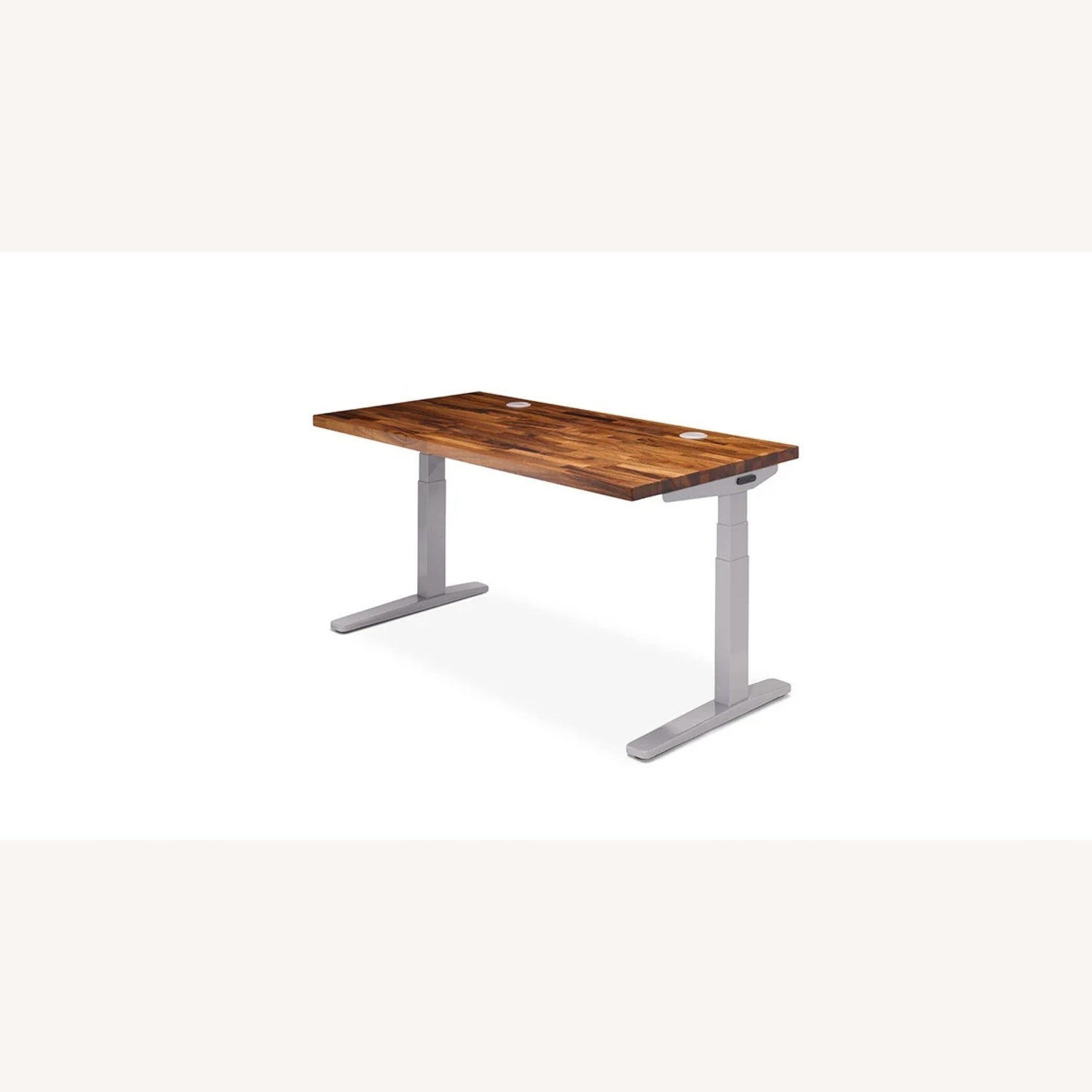 Seller's Notes:Fantastic standing desk that gets a "wow" from everyone who sees it! Heavy solid wood top. Wide enough to keep your computer work compartmentalized from your analog writing and drawing. Hanging desk organizer and extension cord included for your convenience. A few nicks from 5.5 years of use (pictured in listing) but just adds to the charm. The kind of desk that makes you want to get down to work.