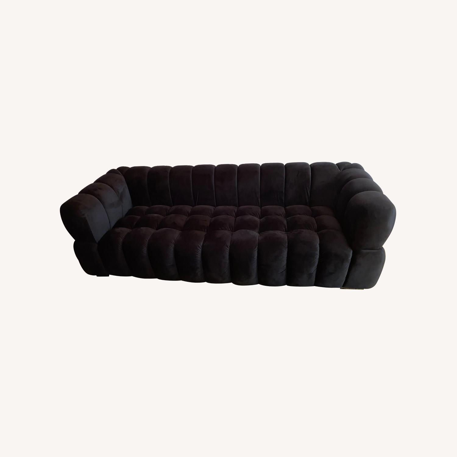Seller's Notes:Rich velvet upholstery covers the sofa, giving it a sleek feel that meshes well with its heavily padded design the combination of which beckons you to sit down and take a load off. Deep biscuit tufting adds to the oversized look of this welcoming sofa, with tufting also serving to keep the fill inside aloft. Two sets of legs come with the Gwen sofa for a custom finish in gold or chrome.