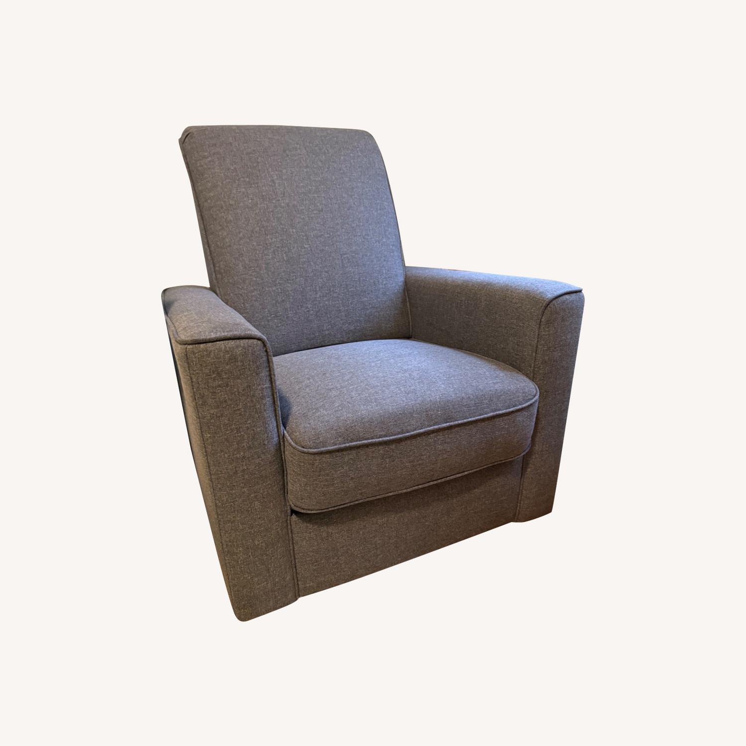 Seller's Notes:Comfortably rock your baby to sleep in the Hampton Nursery Swivel Glider Recliner Chair by Abbyson. A classic fabric upholstery effortlessly blends with a variety of décor themes making it perfect for both boy and girl nurseries. With fully padded recliner leg support, sinuous spring suspension and generously padded arms, back, and seat, this chair is sure to put you to sleep along with your child.