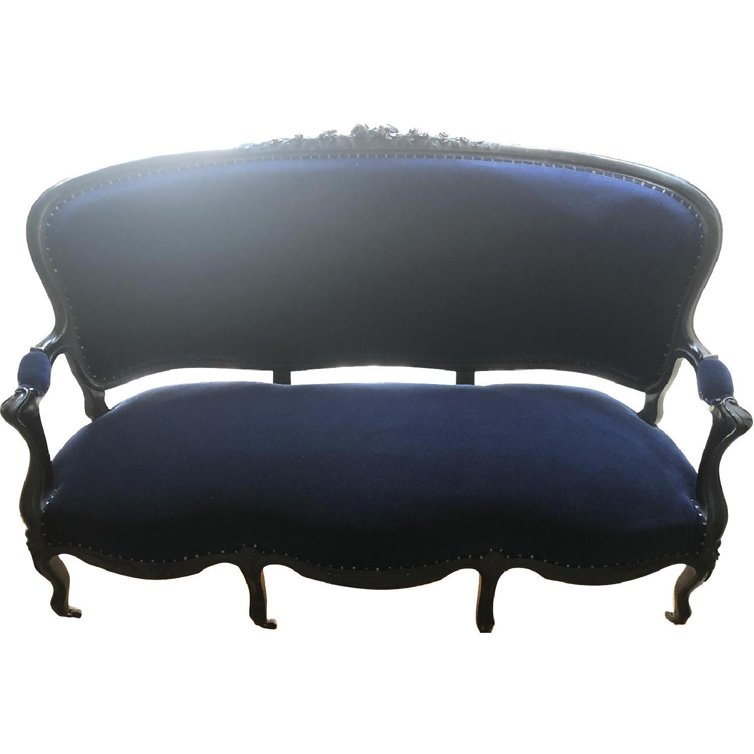 ABC Carpet and Home Antique Settee in Blue Velvet Fabric