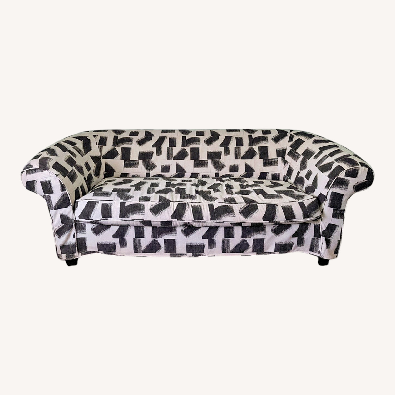 Seller's Notes:ABC Carpet and Home sofa with down filled cushion. Custom slip cover in Romo fabric.