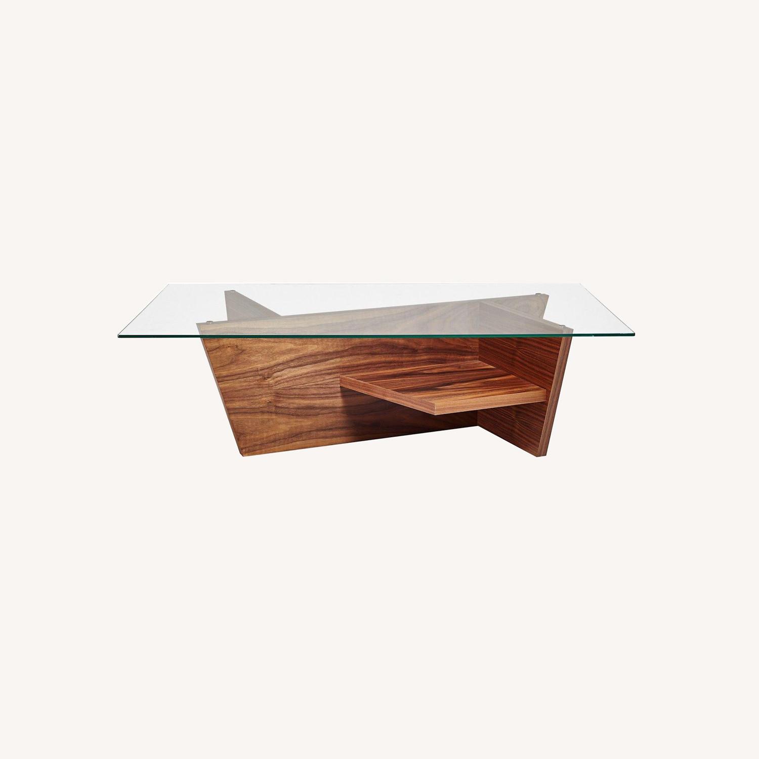 ABC Carpet and Home Olivia Glass and Walnut Coffee Table