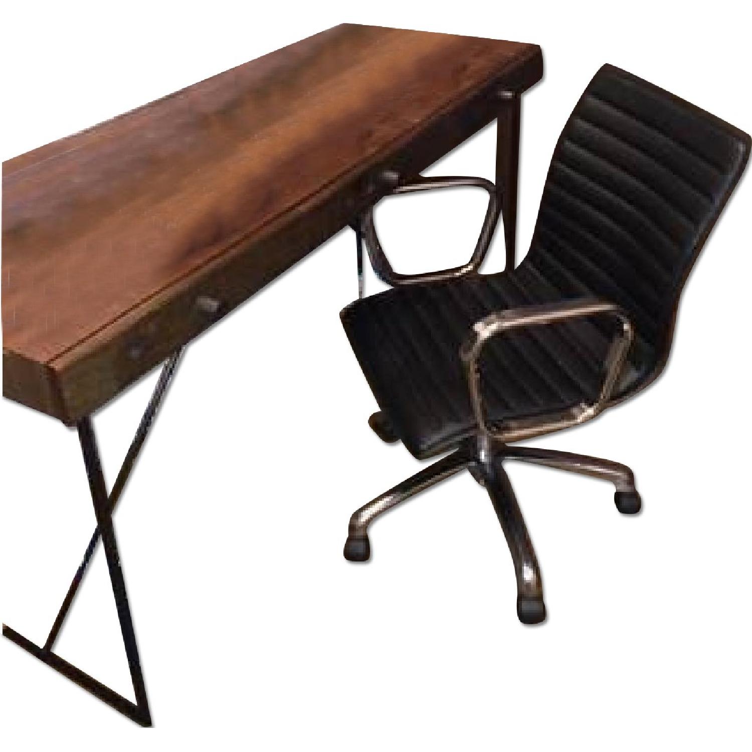 Seller's Notes:We bought this beautiful desk less than a year ago but layout of our new apartment has no room for this piece. Here is a blurb from site: Black walnut; wood from reclaimed and salvaged sources http://www.abchome.com/shop/edge-rustic-writing-desk-1309857 "Combining the natural beauty of wood with contemporary design, the Edge writing desk is crafted from sustainable black walnut. Its geometric steel base blends an industrial aesthetic with three rough-hewn drawers and a rich matte finish."