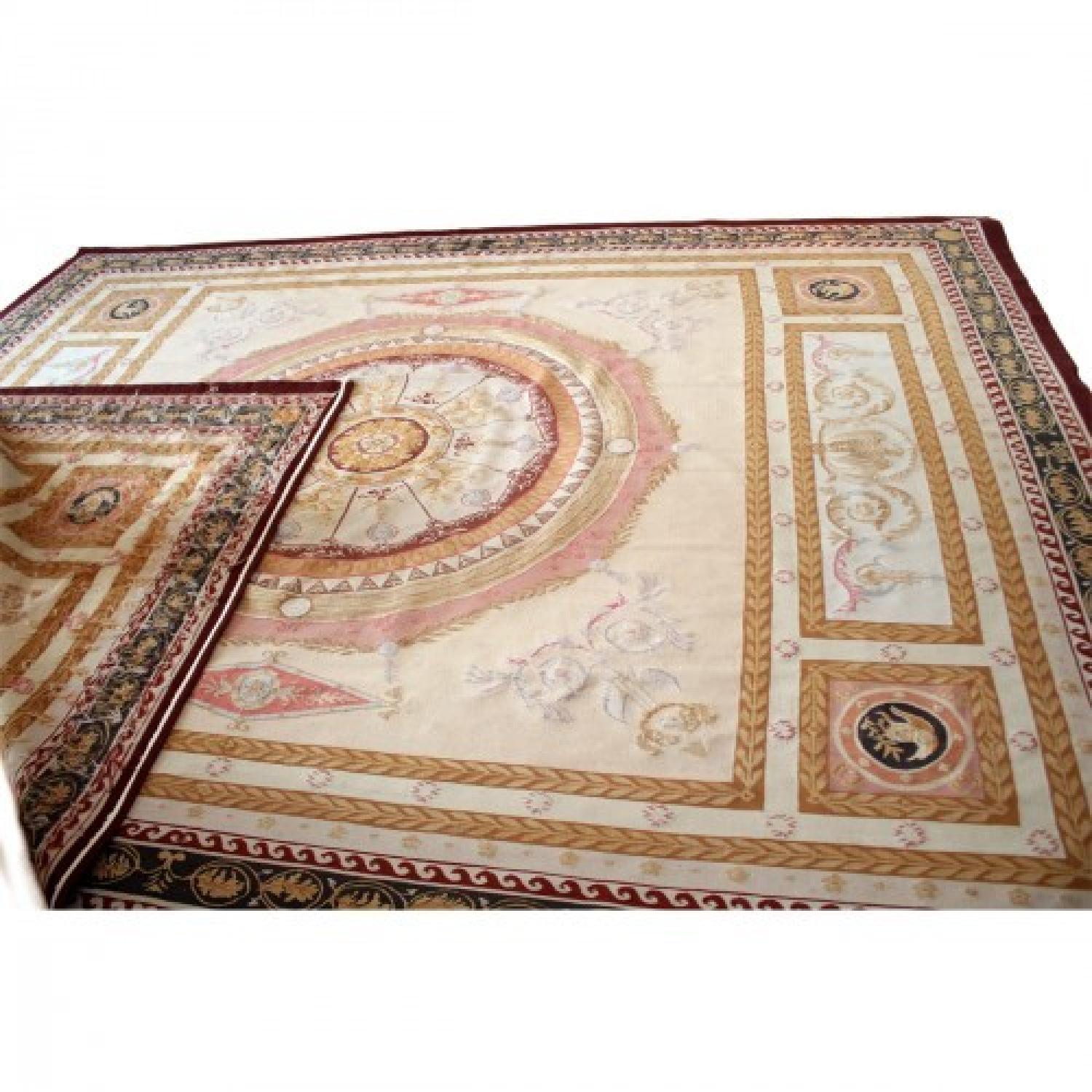 Seller's Notes:A multi-colored, hand tied woven rug, this piece features a cream base and crimson border. Purchased less than five years ago, this rug is a beautiful compliment to any room. No stains or cosmetic issues at all. 8x10