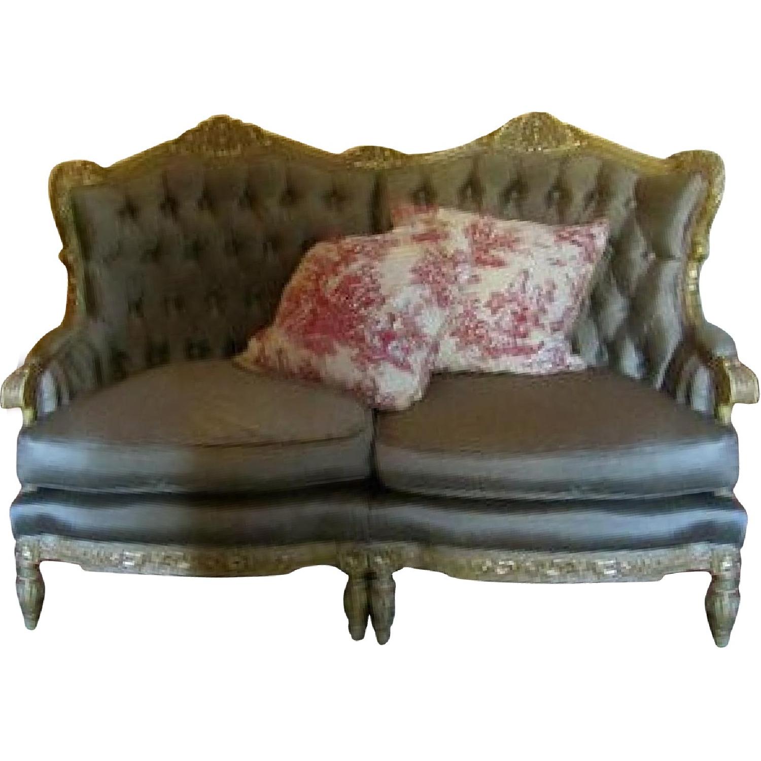 Seller's Notes:Louis XIV Settee Grey Damask Fabric with light wood.