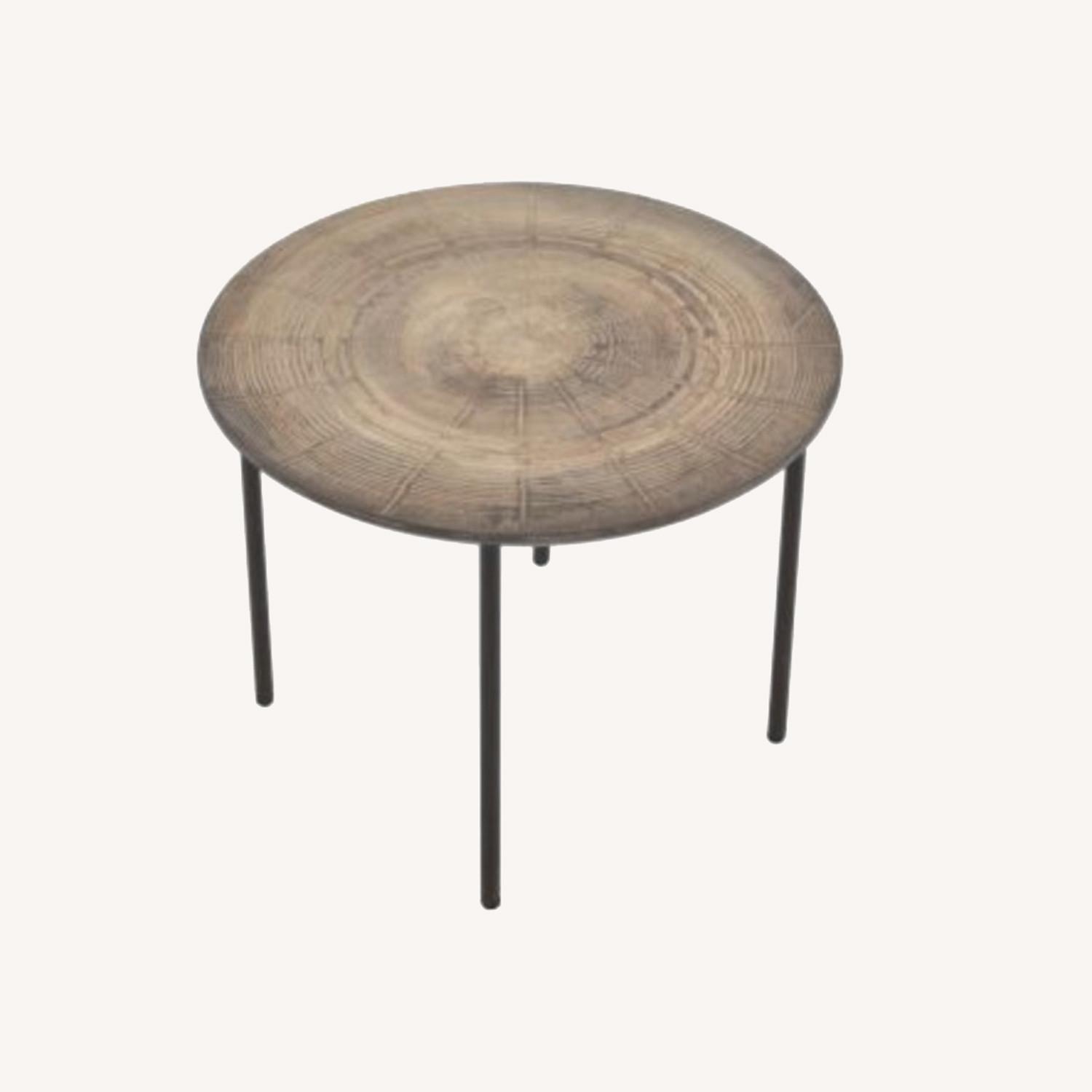 Seller's Notes:Pristine condition, no scratches or damage. Abc carpet and home Mos design side table in sand. Made in italy. Wood top with stucco finishing, metal legs. Discontinued product, rare item.