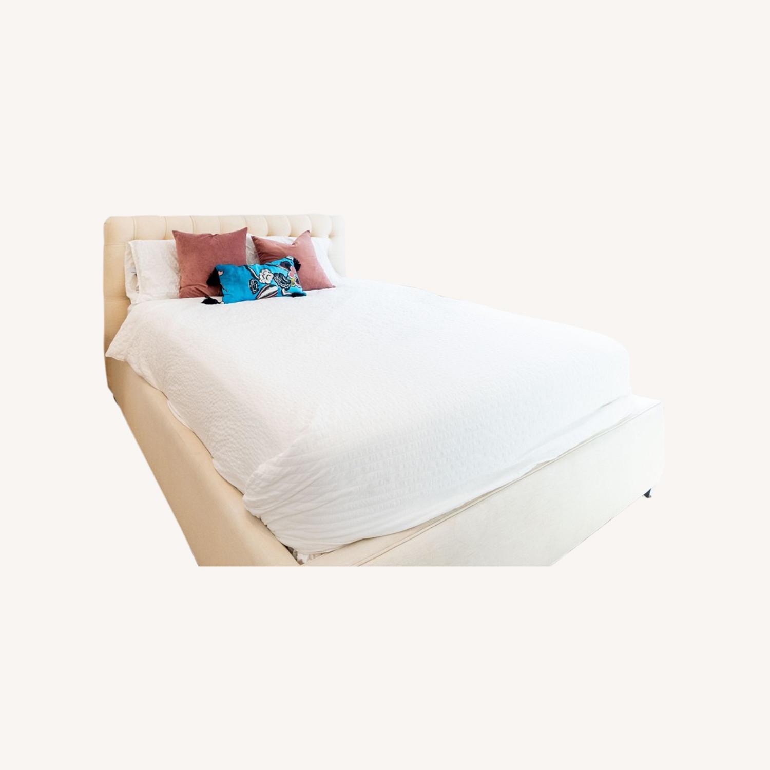 Seller's Notes:Needs reupholstering. I do not have close up photos yet. Solid bed structurally - real wood. Very heavy headboard + 3 pieces for frame that click into place. The light color linen has discoloration from me trying to steam clean it. There are some rips as well on the bed frame portion. I am trying to give this away so I priced it at the lowest allowed on AptDeco. Please let me know if you need shipping and I'll adjust price so that I pay for 50% of the shipping.