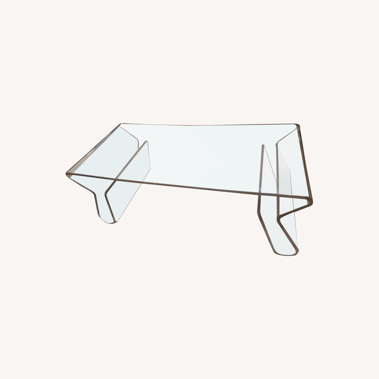 Seller's Notes:Spacious coffee table, the transparency makes the space feel bigger, perfect for small NYC apartments. Contemporary design that blends with many decor styles. You can store things like magazines in the legs for easy access. It's pretty lightweight. I purchased this, took it home in an Uber, and brought it up four flights of stairs. Happy to provide additional photos.